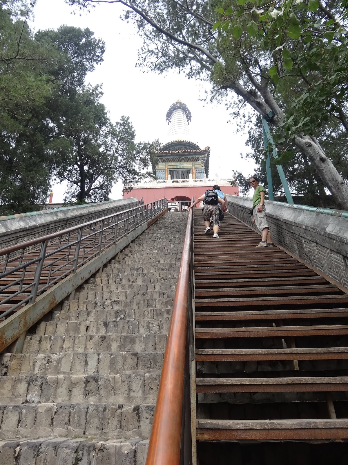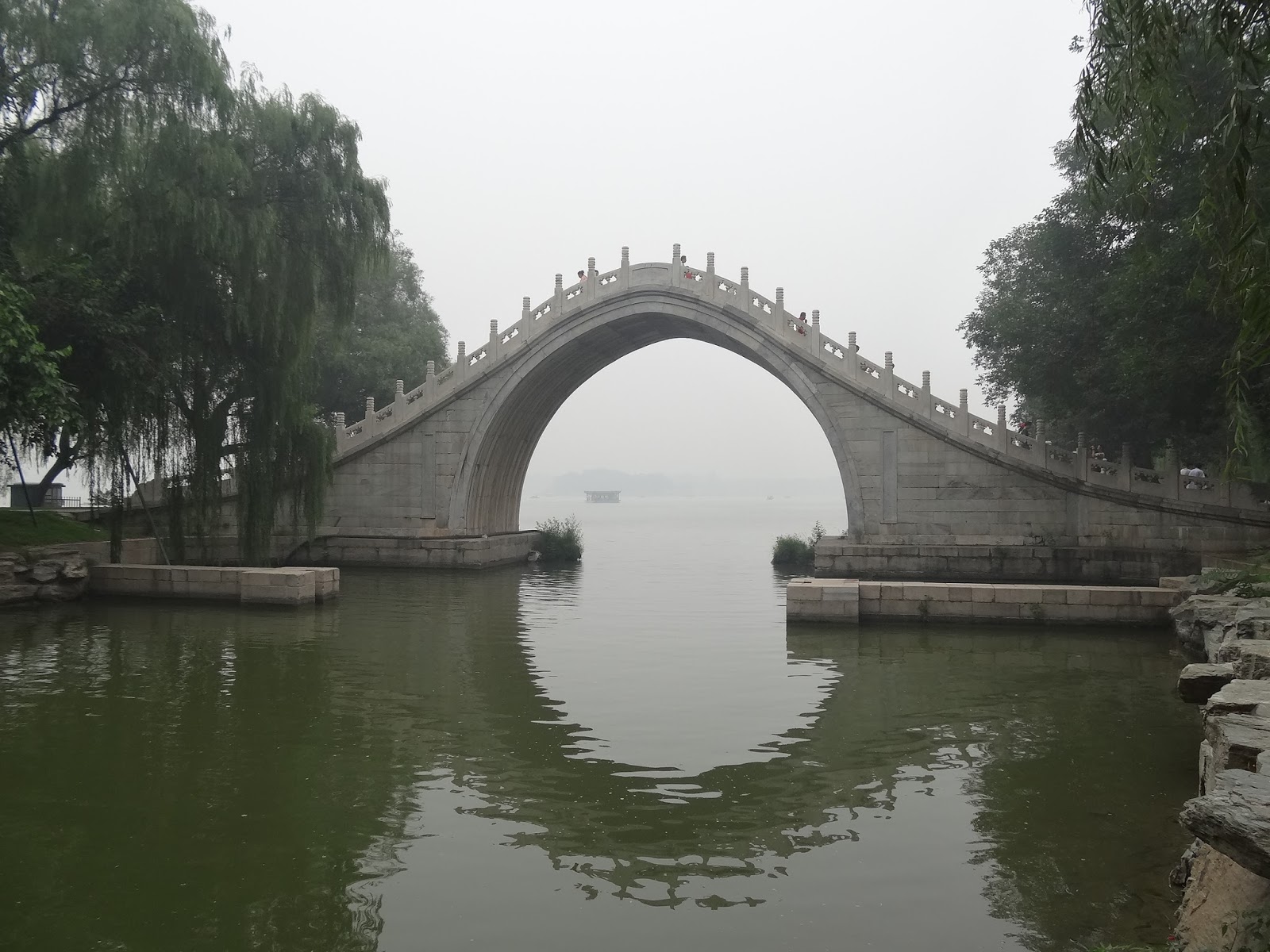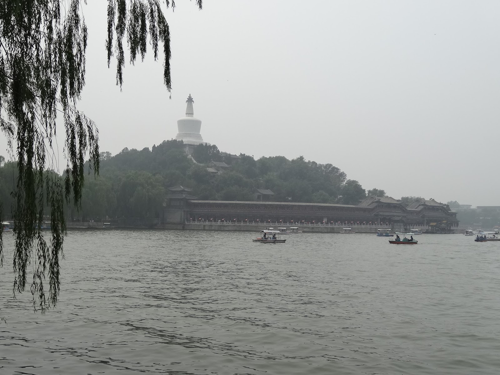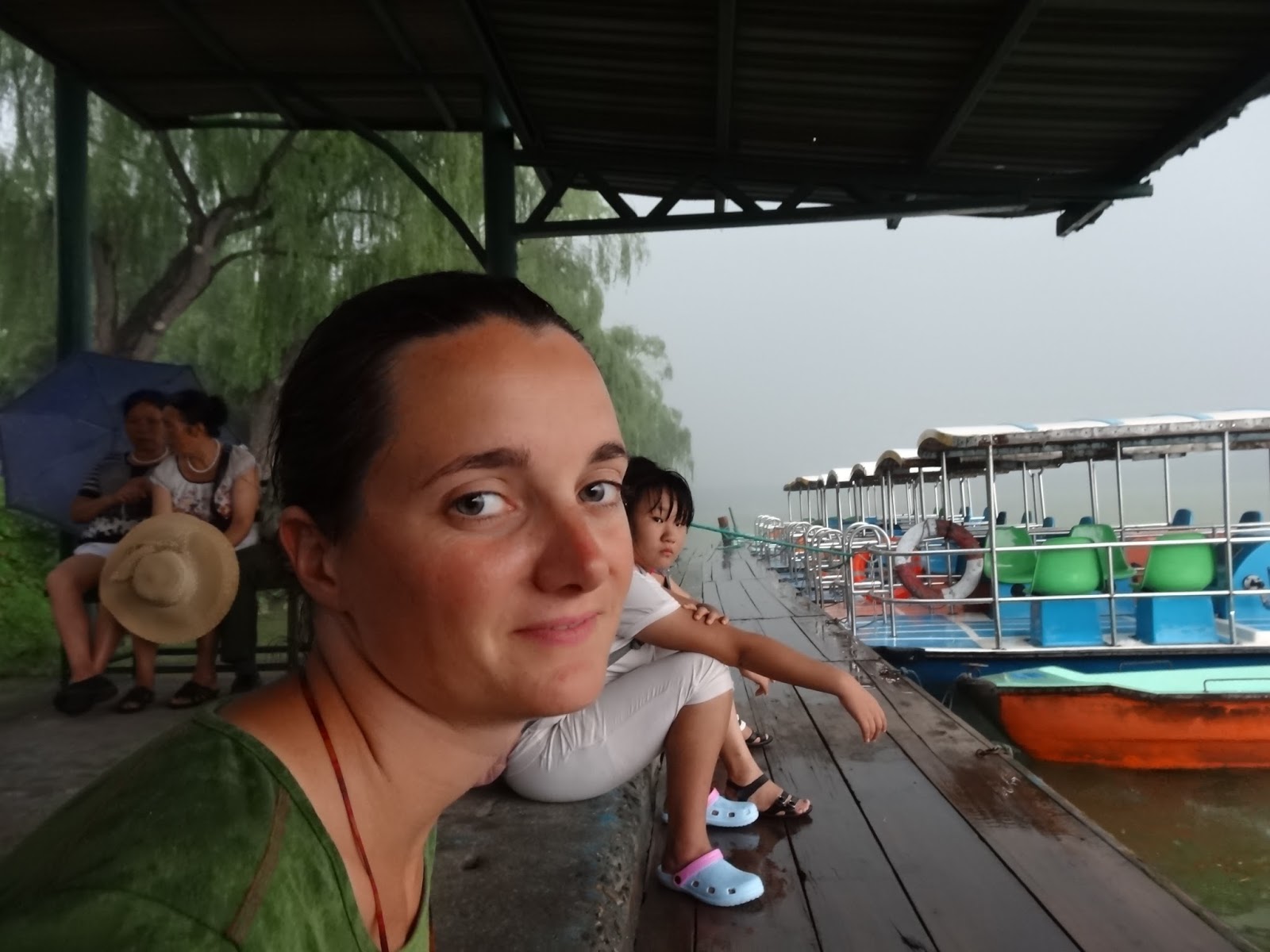 Le Palais d'été, une folie de l'impératrice Cixi mais qui est vraiment grandiose (tout est artificiel, même les reliefs). On a droit à un énorme orage, nous restons plus d'une heure à l'abri dans un local des loueurs de pédalos tellement que l'orage est puissant, la foudre tombe plusieurs fois tout près. Vers la fin, on nous donne un parapluie pour qu'on parte.