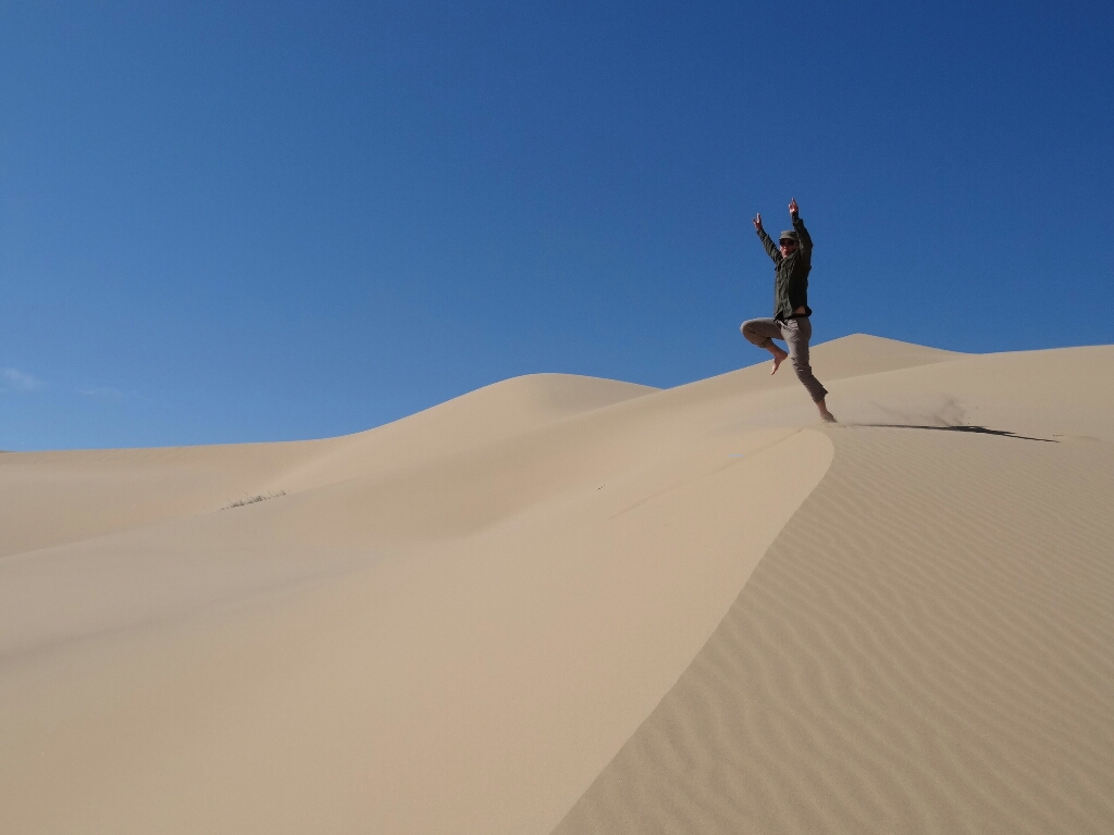 Après ça nous sommes tous motivés pour aller voir les dunes qui ne sont plus très loin, en plus c'est bientôt l'heure du coucher de soleil.
