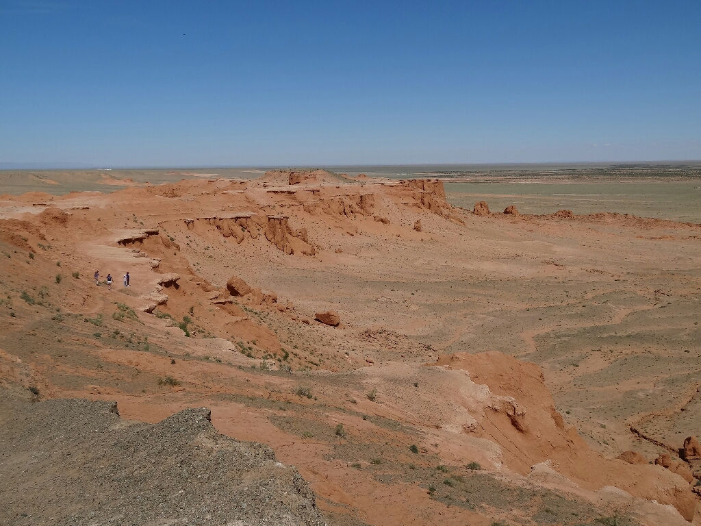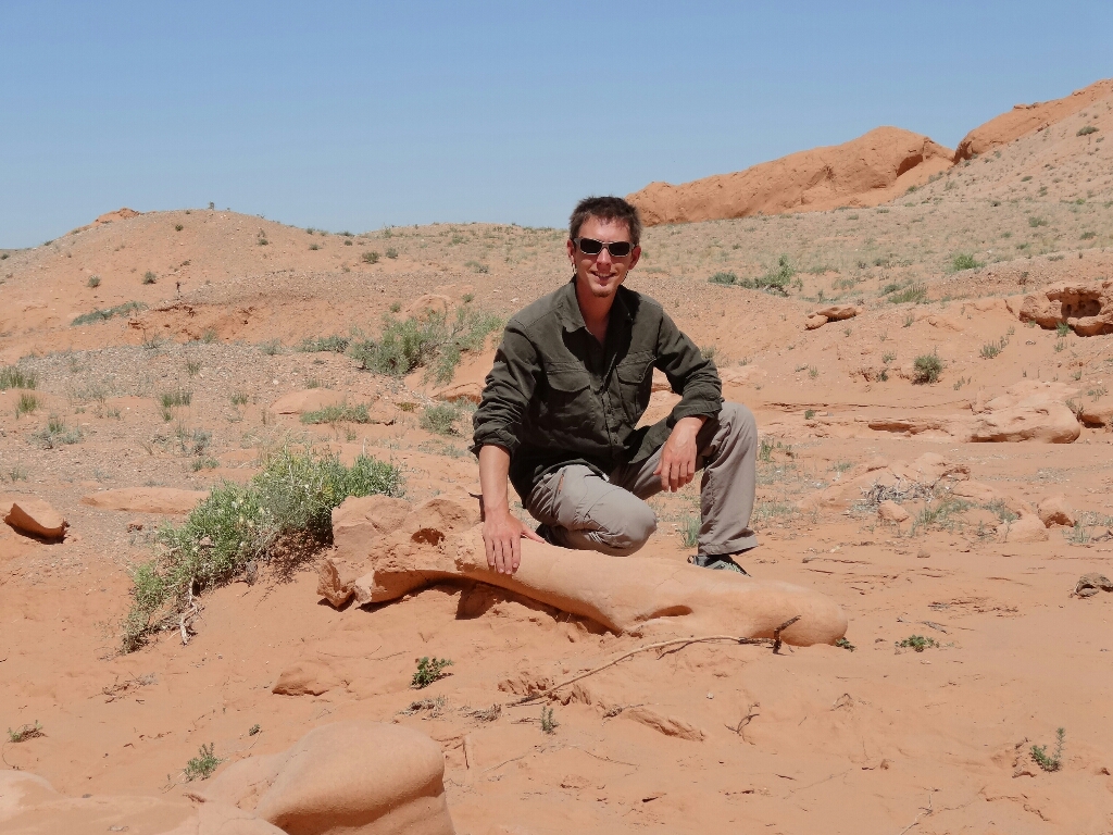 Le lendemain nous repartons en direction d'Oulan-Bator. En chemin on s'arrête au niveau de falaises gréseuses, dites "les falaises de feu", où ont été trouvés des os de dinosaures et du bois fossilisé. On a bien cherché mais on a rien trouvé, à part cet énorme os qu'on ne pouvait pas prendre avec nous.