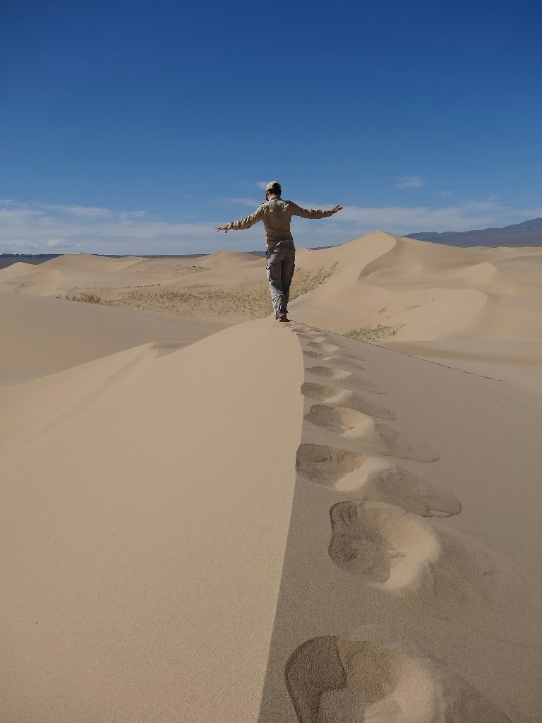 Le 4ème jour nos atteignons donc le pied des dunes où nous resterons deux nuits. En arrivant, nous avons droit à l'accueil de la famille mongole qui vie là. Ils nous servent du lait de chèvre chaud, des biscuits, du yaourt, tout est très bon. Cette famille élève des chèvres, des moutons et des chameaux.
