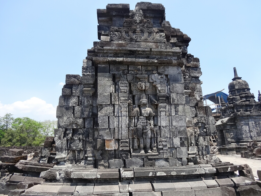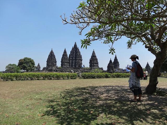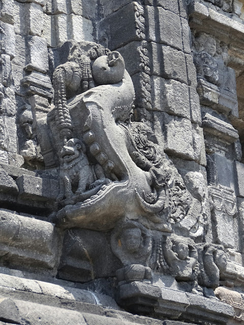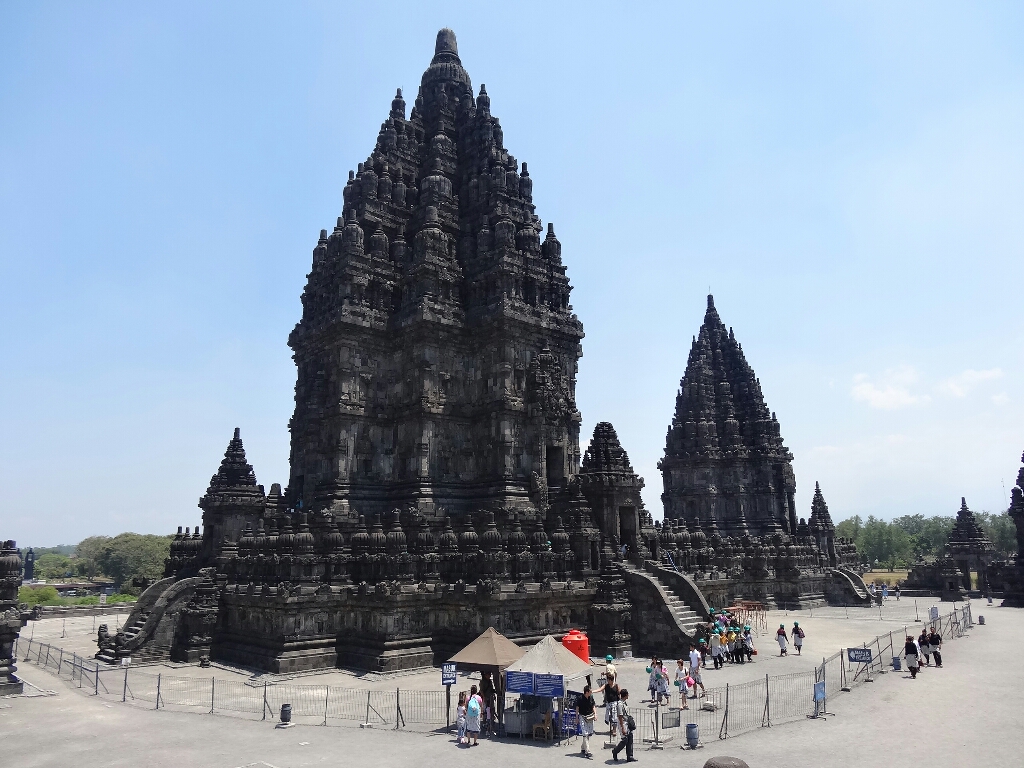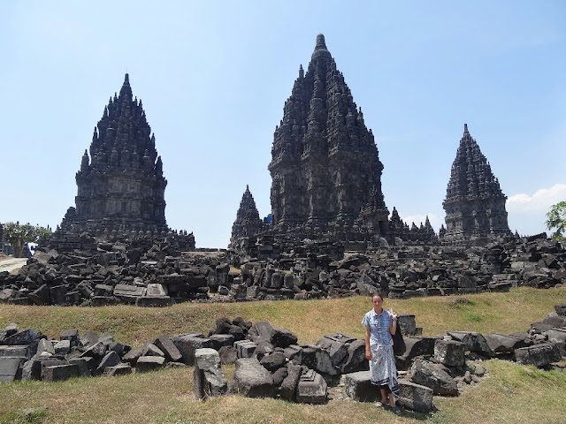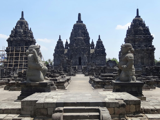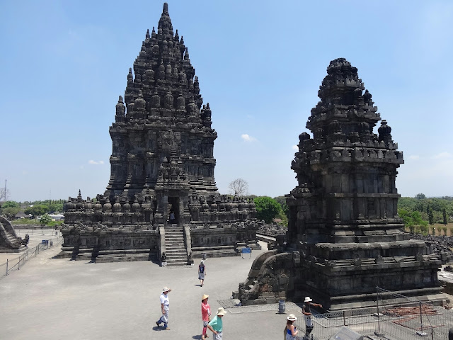 Ensuite, nous sommes allés sur le site de Prambanan. Ces temples sont les plus beaux vestiges de la période hindoue à Java. Ils furent édifiés entre les VIIIème et Xème siècles. Le site a beaucoup souffert lors du tremblement de terre de 2006, il est encore en cours de restauration. Le temple principal, Candi Shiva Mahadeva, culmine à 47 m de haut.