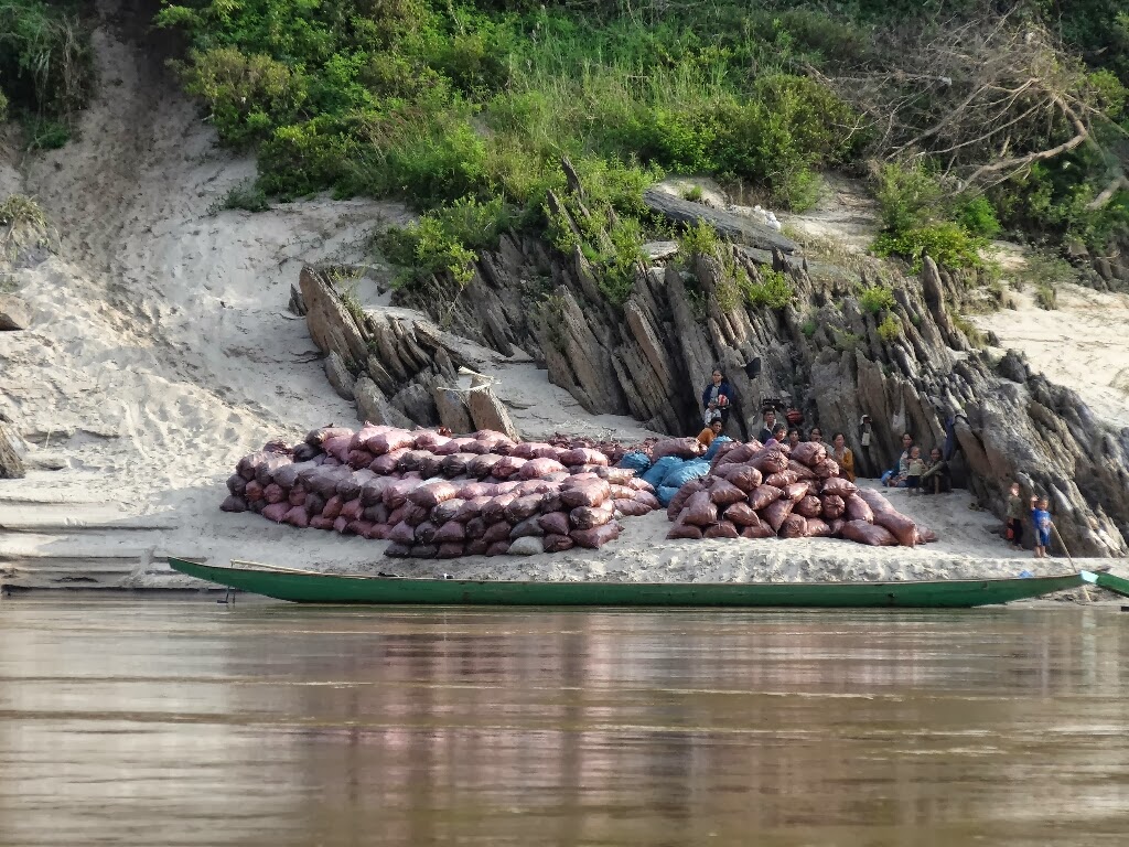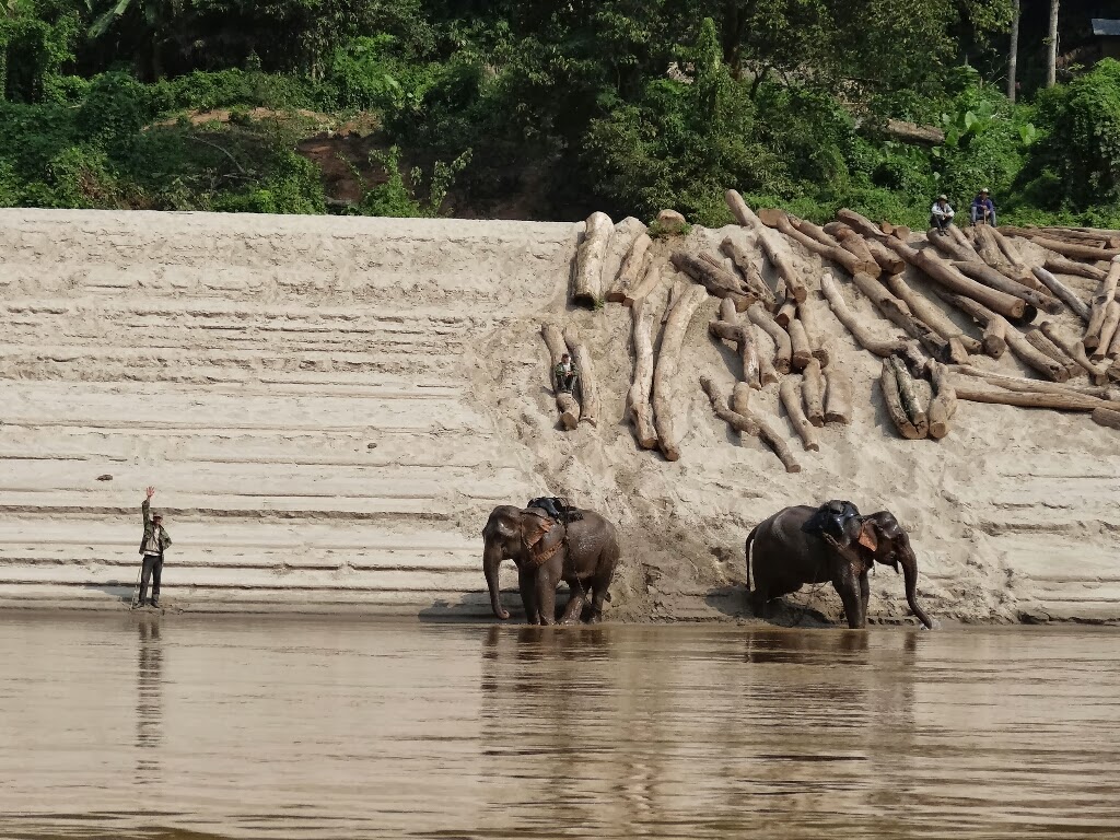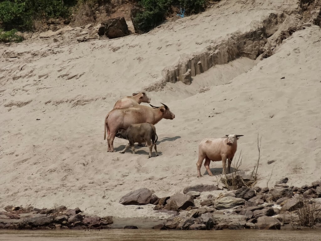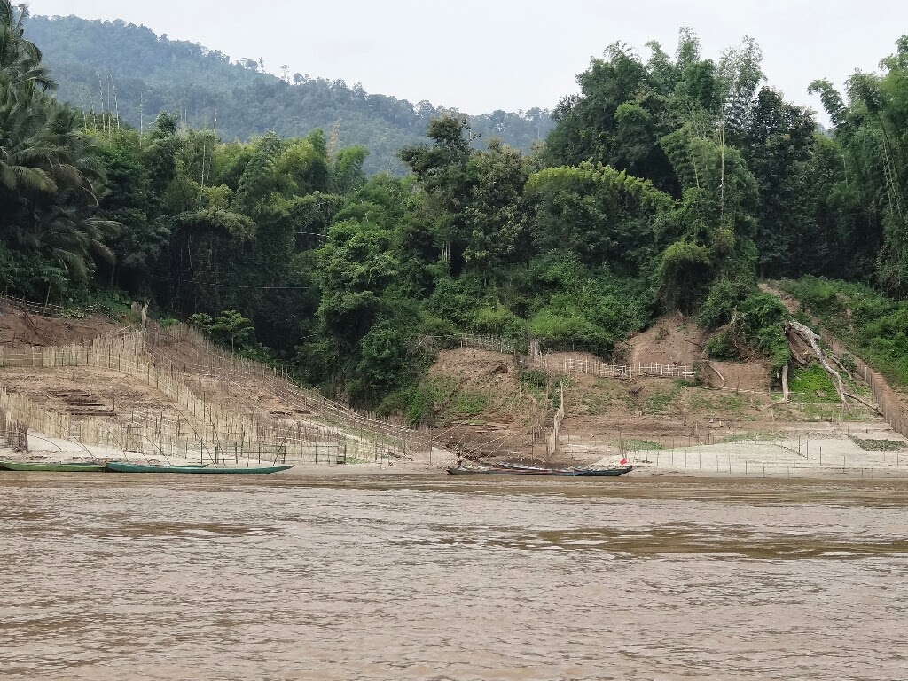 Le trajet jusqu'à Luang-Prabang se fait en deux jours avec un arrêt dans le village de Pakbeng où nous passons la nuit. Pendant ces deux jours, nous voyons défiler les paysages et la vie le long de ce fleuve qui est une ressource en eau pour les habitants et leurs animaux, une voie de transport pour les marchandises et les personnes, une ressource alimentaire et financière pour les pêcheurs et les paysans qui utilisent ses alluvions fertiles pour y faire pousser leur légumes et leurs céréales.