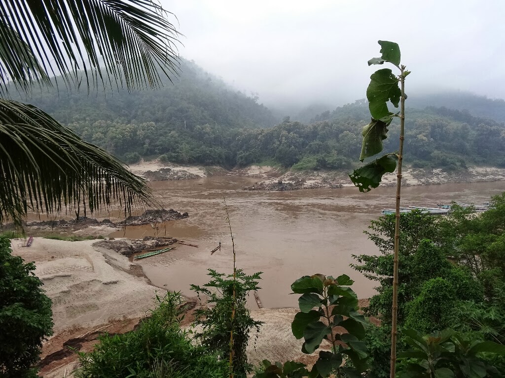 Au petit matin du second jour, nous admirons la vue brumeuse sur le Mékong depuis la terrasse de notre Guesthouse.