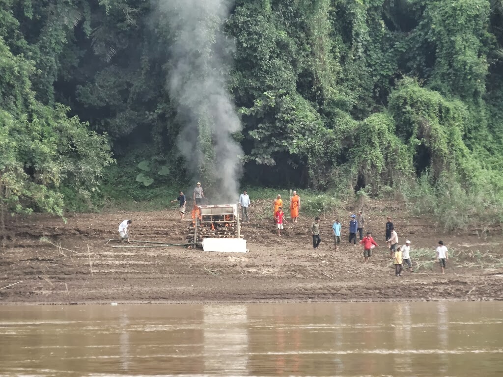 Le Mékong crée beaucoup de vie et il accueille aussi la mort, le bord du fleuve sert également de lieu de crémation.