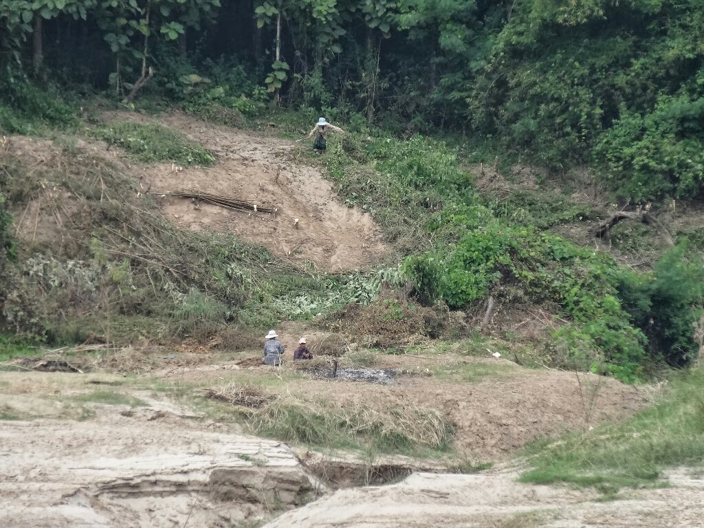 Des paysans défrichent les berges du fleuves pour les mettre en culture.