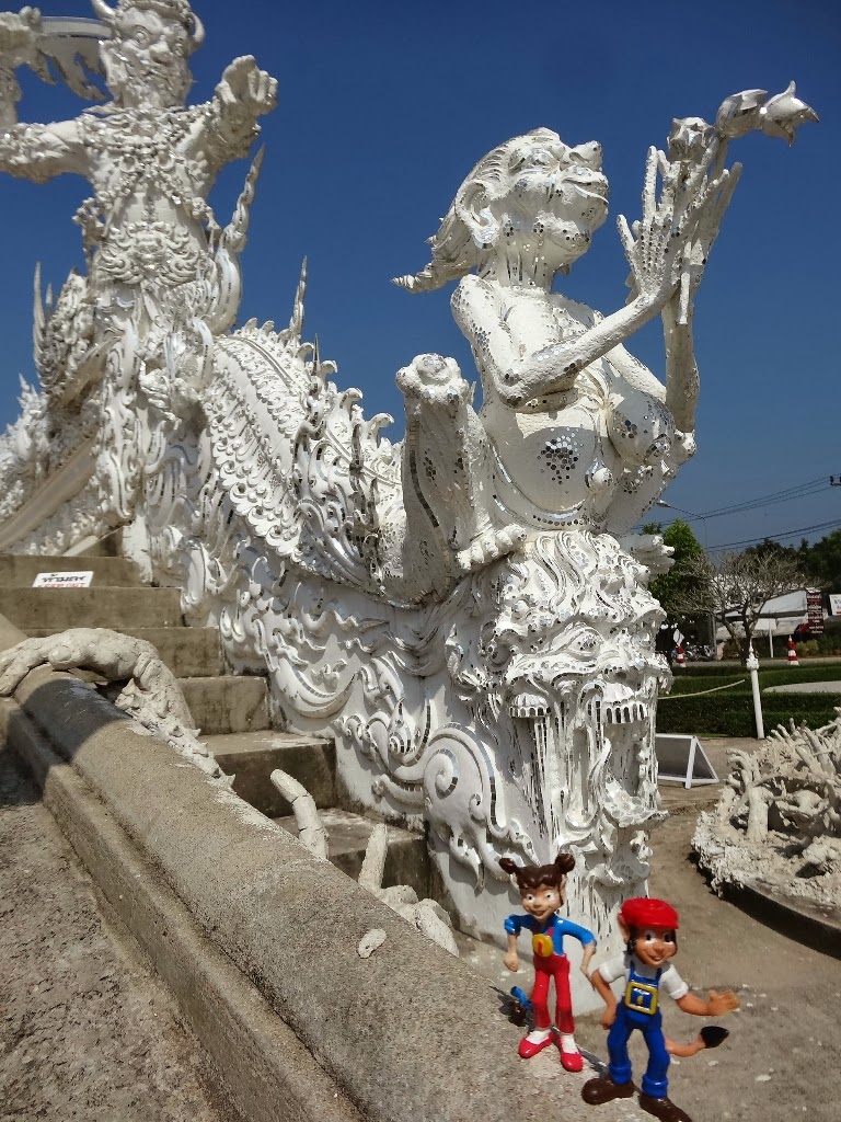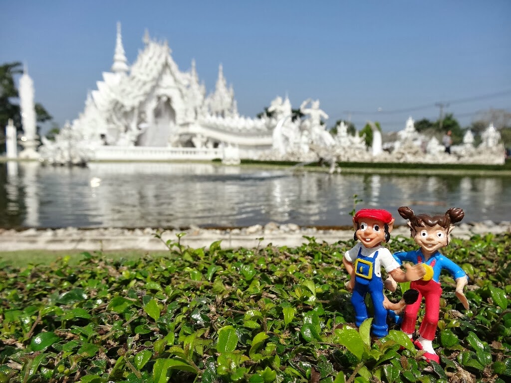 A Chiang Rai ils ont découvert les temples bouddhistes qui sont particulièrement kitsch dans ce pays et en particulier un temple tout blanc construit par un artiste un peu exhubérant.