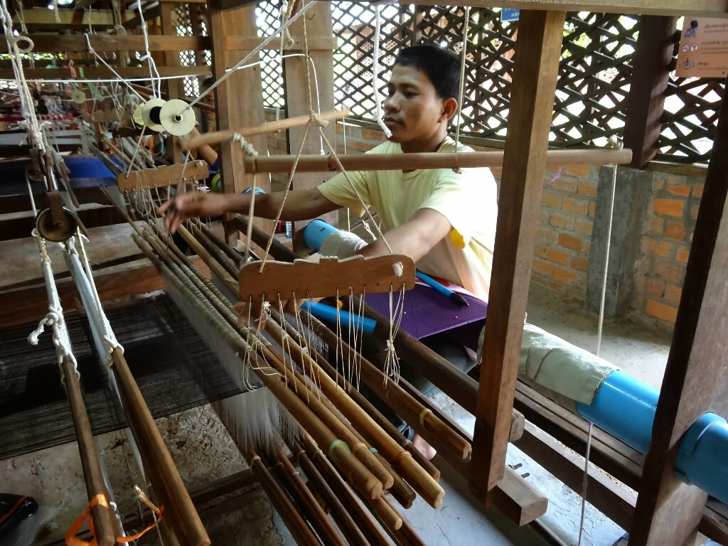 Pour faire 2m de tissus avec des motifs il faut environ 2 jours et cela est payé 3 USD. Les employés travaillent 8 heures par jour, 6 jours sur 7 et sont payés aux mètres réalisés. Cela correspond à environ 150 USD par mois ce qui est un salaire moyen au Cambodge.