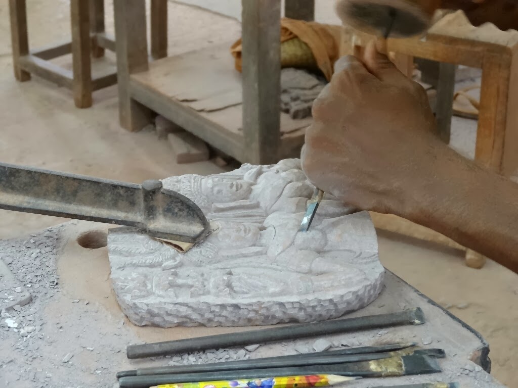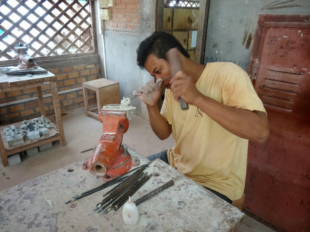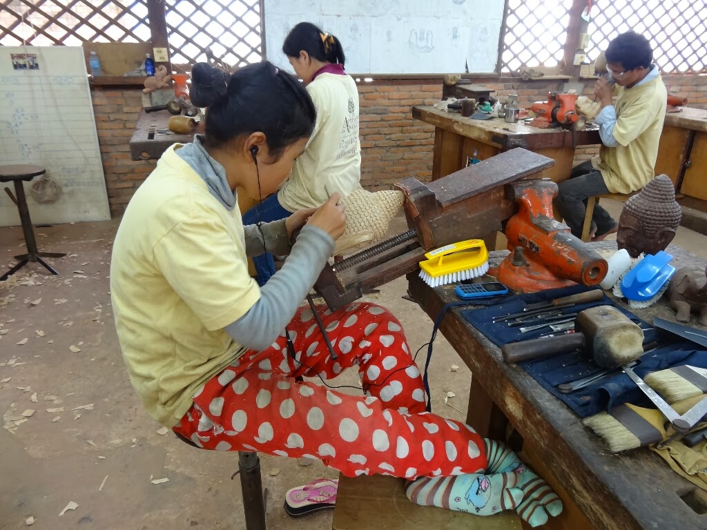 Le lendemain de notre courte nuit, nous faisons un tour en ville et visitons les Chantiers écoles où des jeunes issus de milieux défavorisés sont formés à la sculpture sur pierre et sur bois, la peinture sur soie traditionnelle, etc.
