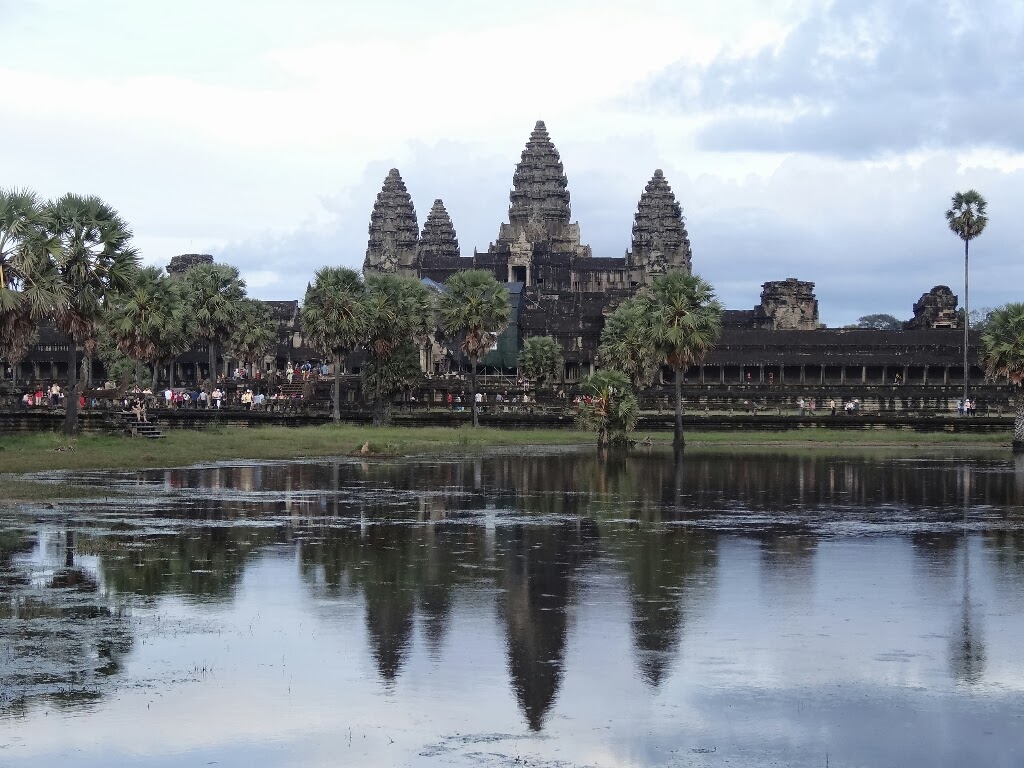 Après ça, nous louons des vélos et allons acheter nos tickets "3 jours" pour la visite des temples d'Angkor. Nous avons le droit d'aller sur le site gratuitement pour le coucher du soleil. Même si le temps est nuageux et que le coucher de soleil n'est pas extraordinaire nous ne pouvons pas résister à la curiosité d'aller voir Angkor Vat, mais la visite ce sera pour les 3 prochains jours.