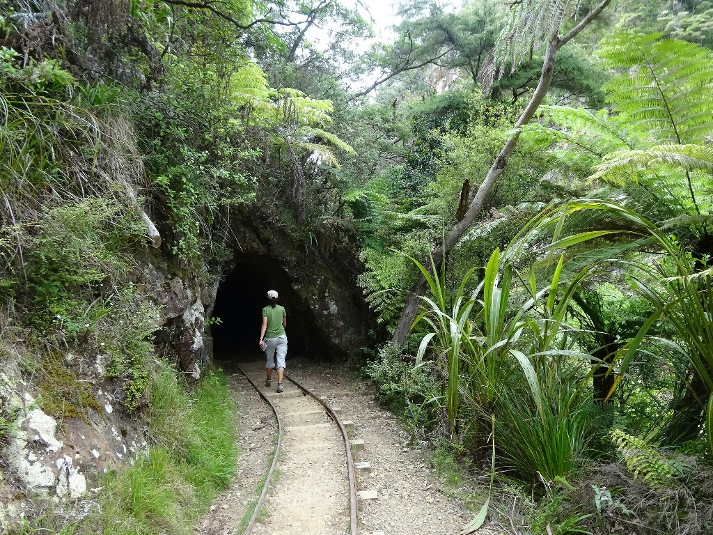 Le lendemain, on se rend dans les gorges de la Karangahake, non loin de là, pour faire une petite randonnée dans une vallée où se trouvaient des mines d'or et d'argent. De nombreux panneaux montrent d'anciennes photos.