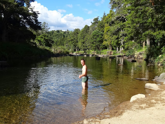 Pour passer la nuit nous trouvons un camping du DOC au bord de la rivière Waitawheta, dans laquelle nous prenons un petit bain, l'eau est très bonne, rien a voir avec les rivières de l'île du sud.