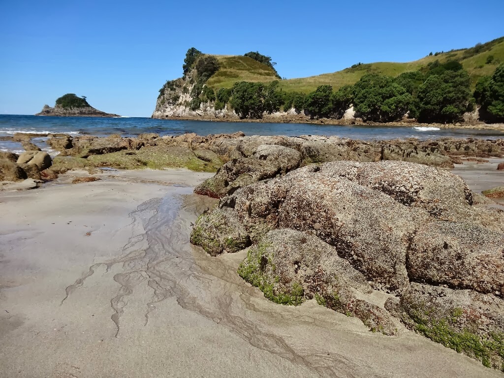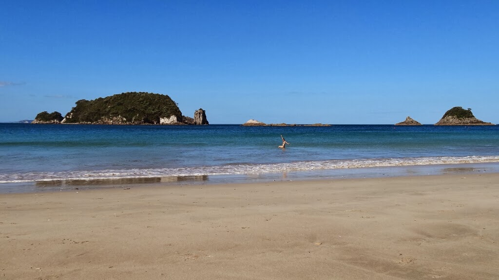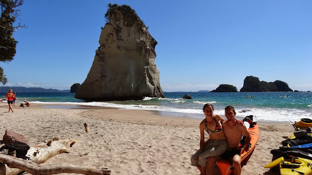 A Hahei nous réservons pour le lendemain une sortie en kayak de mer. Nous passons notre fin d'après-midi sur la très belle plage qui se trouve à quelques pas de notre camping.