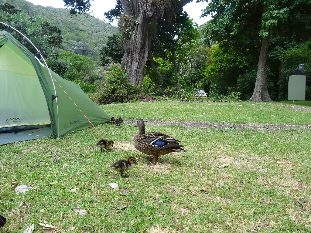 Nous passons la nuit dans un camping du DOC à "Fantail bay" au milieu de ces arbres et de canards opportunistes.