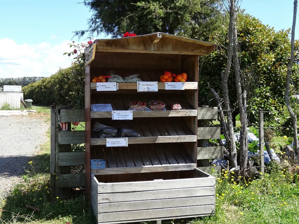 Beaucoup de producteurs vendent leurs fruits et légumes sur le bord de la route : un stand et une caisse où l'on dépose l'argent en toute honnêteté.