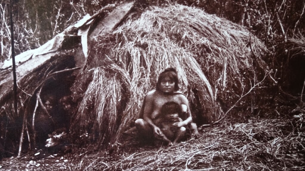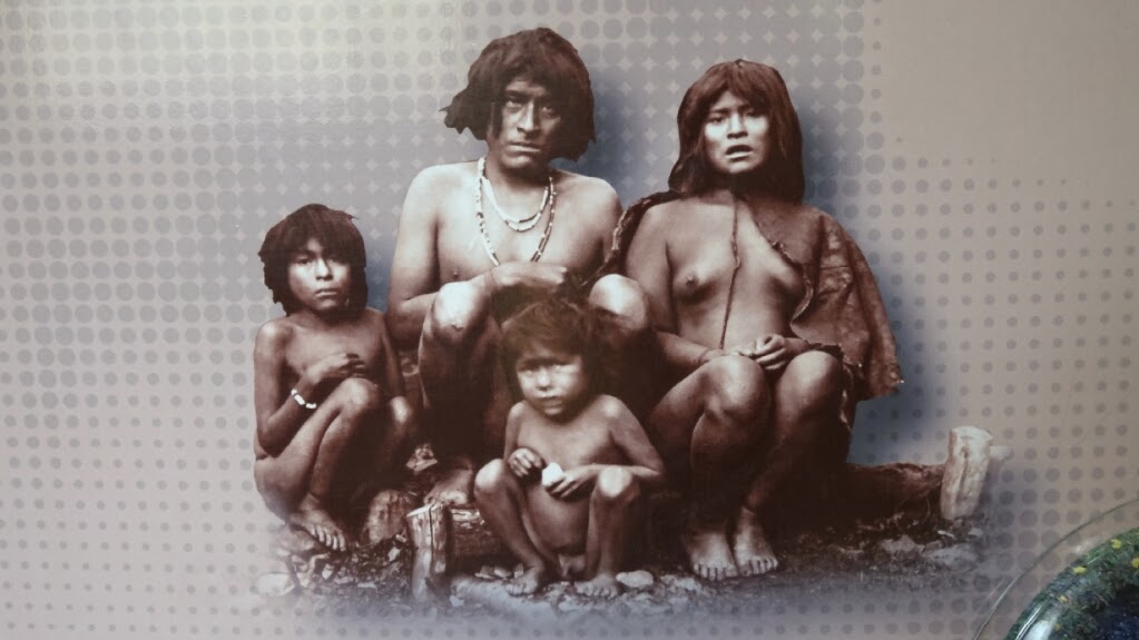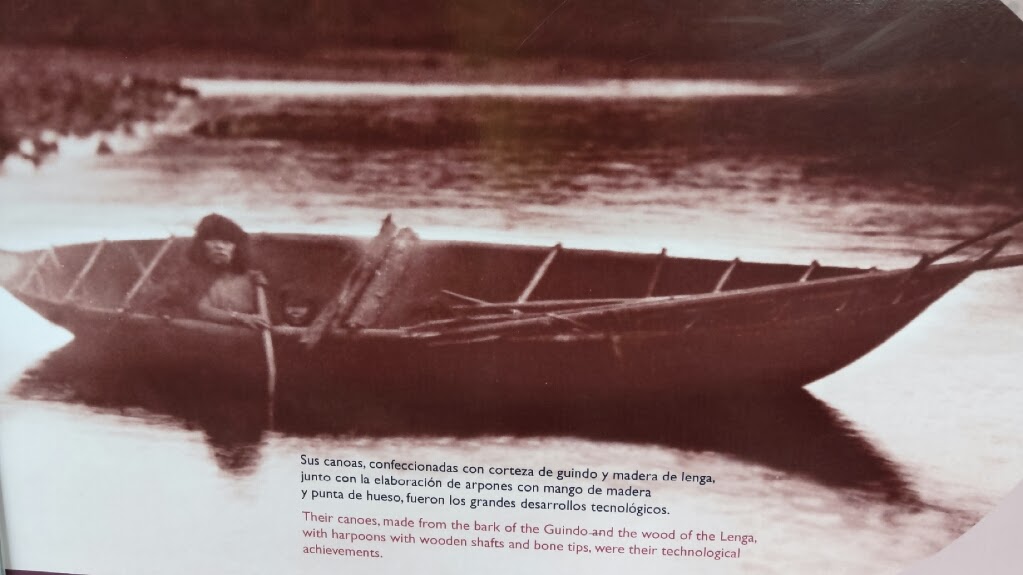 Avant d'arriver au camping on s'arrête au bâtiment d'accueil des visiteurs où il y a de très intéressantes expositions sur la morphologie du paysage, la faune, la flore et les différents peuples qui vivaient en Terre de Feu avant l'arrivée des européens. Les Yaghans vivaient ici quasiment nus depuis des milliers d'années, bien adaptés à ce milieu très dur, c'est assez incroyable. Ils s'enduisaient de graisse de baleine, étaient nomades, ils changeaient de camp tous les 3 ou 4 jours et habitaient des cabanes très rustiques.