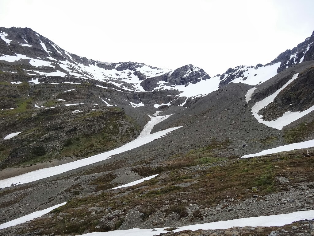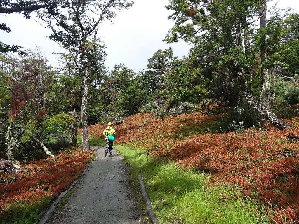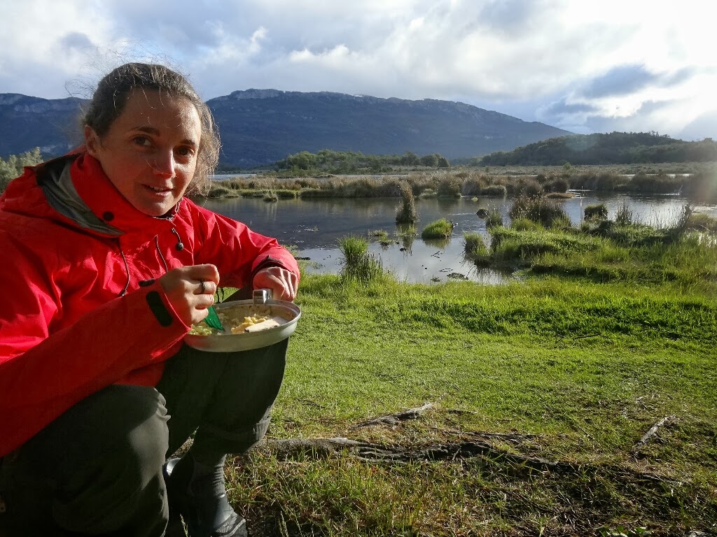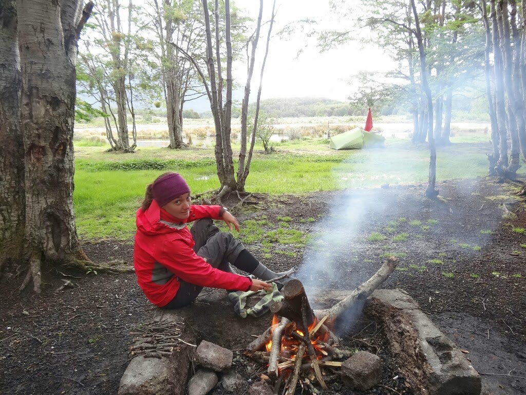 Il est 16h30, nous avons mis 4h pour arriver au sommet et nous avons moins de 2h pour descendre, plier notre tente, faire les sacs et avoir le dernier bus pour revenir sur Ushuaia. La première partie dans la neige et les pierriers est plutôt facile, nous passons ensuite la tourbière, c'est un peu plus laborieux. Puis il faut descendre dans la forêt en évitant de glisser sur les racines. Nous arrivons au camping en 1h30, on a bien cavalé, ou plutot dévalé, nous rangeons nos affaires en 15min et sommes même en avance pour prendre le bus.