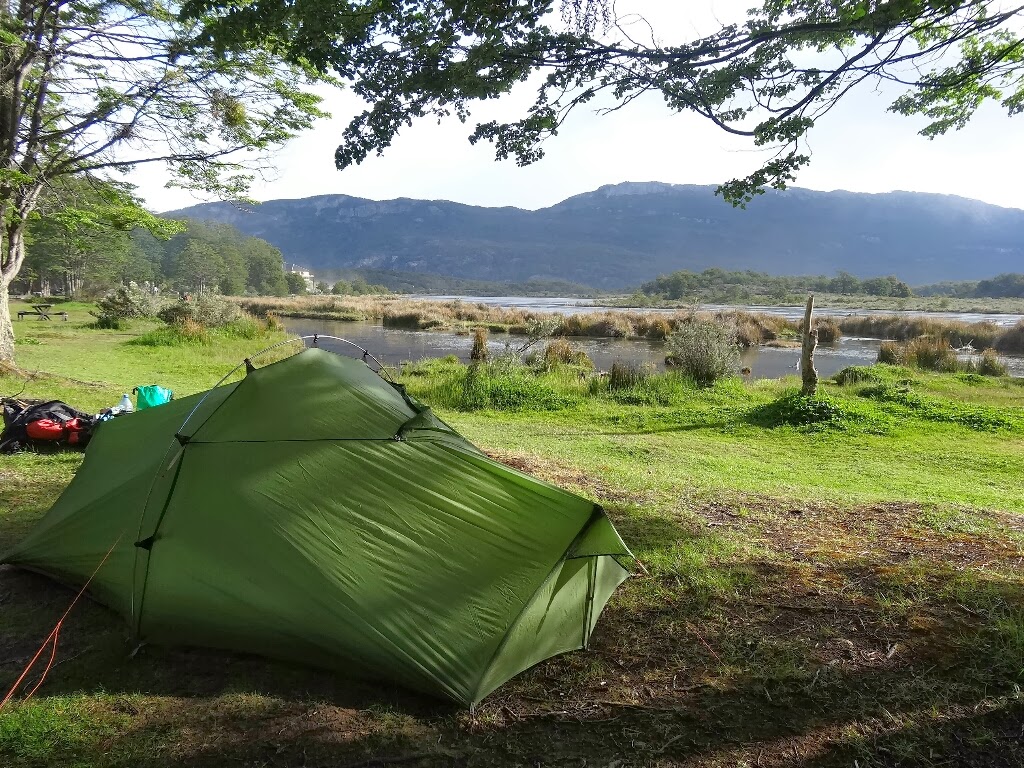 Nous posons notre tente au camping au bord du lac. Il y a de nombreux rapaces (2 espèces de Caracaras) qui viennent ici se nourrir autour des barbecues, mieux vaut ne rien laisser trainer.