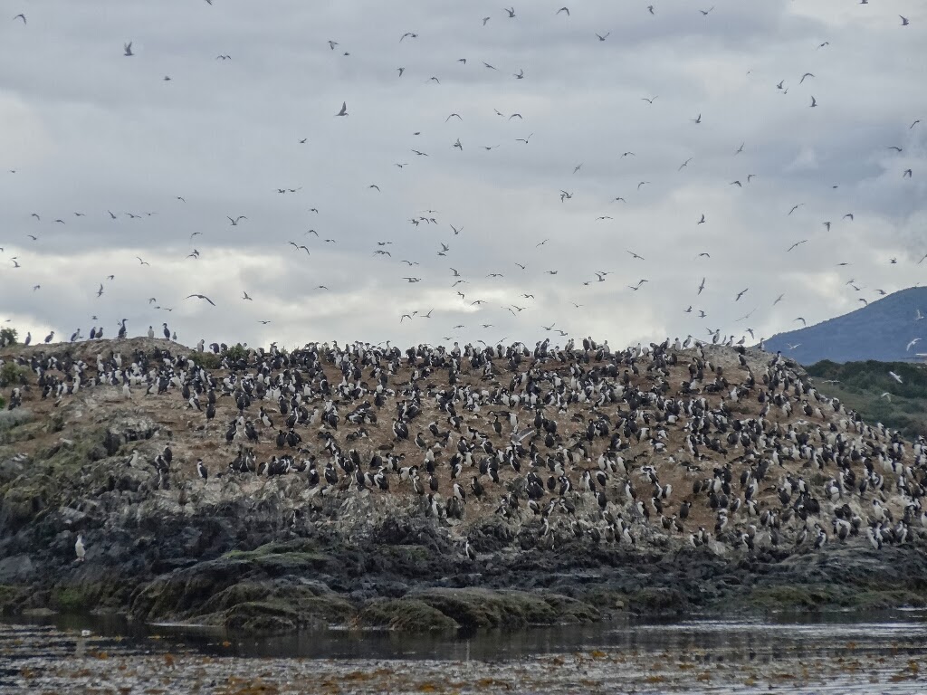 Nous remontons à bord du bateau et retournons sur Ushuaia, en route nous contournons une île où se trouve une grosse colonie de cormorans et de sternes.