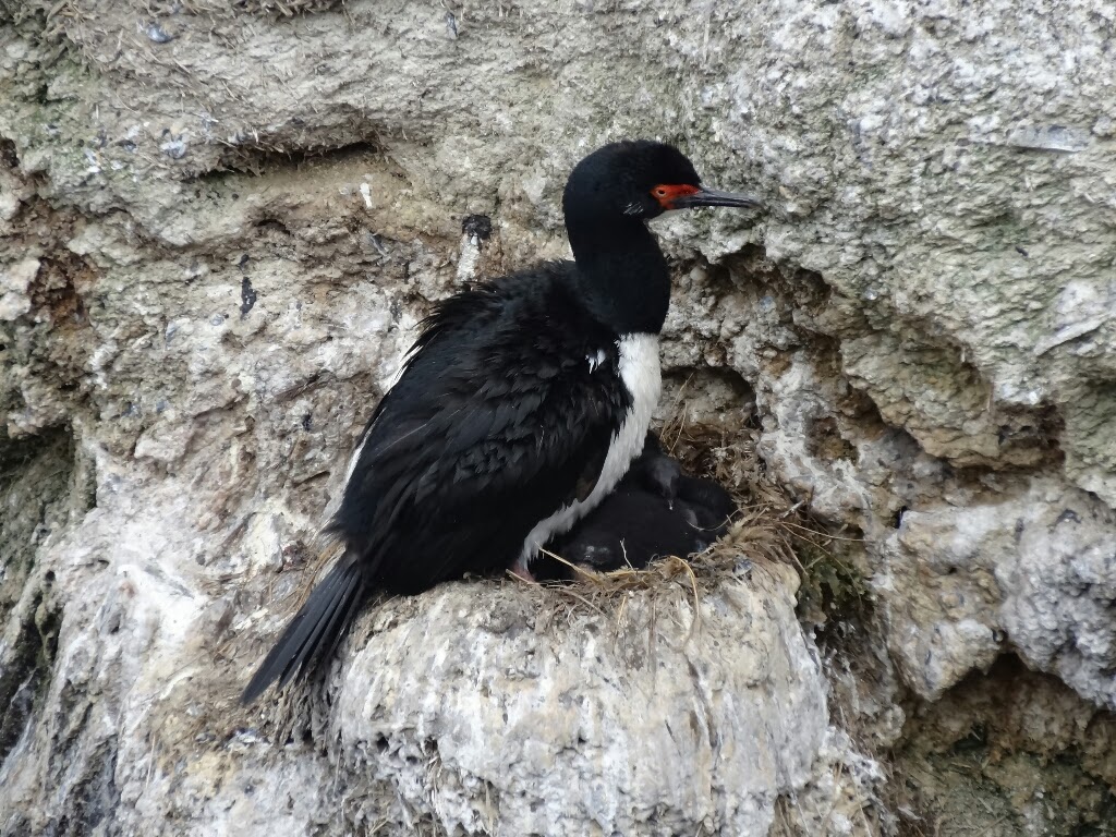 Une colonie de cormorans avec leurs petits sur un rocher. Si on est un cormoran, mieux vaut habiter sur le haut du rocher, sinon on reçoit les fientes des autres sur la tête !