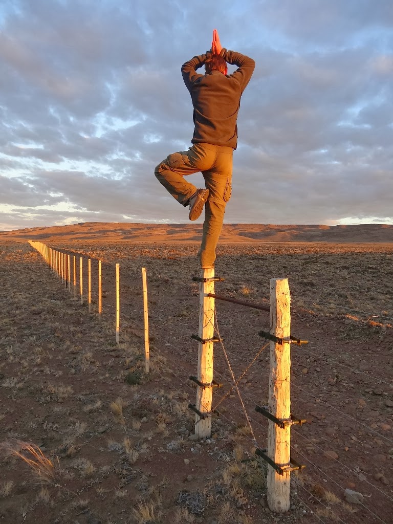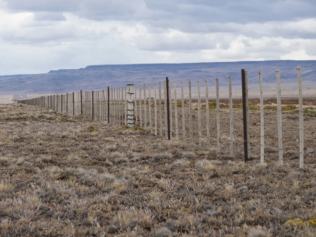 La route 40, parfois une piste, parfois asphaltée, traverse le nord de la Patagonie argentine qui est une région désertique de pampa. Les paysages nous rappellent les steppes mongoles, à un détails près, ici des centaines de kilomètres de clôtures courent le long de la route et délimitent les immenses propriétés.