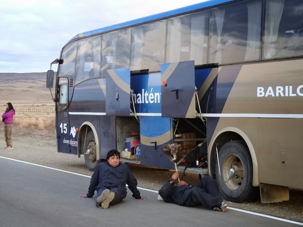 De retour à Perito Moreno, nous posons notre tente au camping municipal puis nous allons à la gare routière, prochaine étape, retour au Chili. On nous annonce qu'un bus part dans deux heures, nous hésitons, demandons s'il y en a un le lendemain, il est plein. Nous n'hésitons plus. On déplante la tente, on prend une petite douche et on repart pour une nuit en bus sur la route 40... Nous n'avons pas trop de mal à dormir quelques heures dans le bus après la nuit blanche dernière. Nous arrivons à Bariloche à 8h15. Notre plan est de prendre un bus pour passer la frontière chilienne et aller jusqu'à la petite ville Entre Lagos, si possible dans la journée ou demain. Nous demandons à un chauffeur qui nous dit qu'il y a de la place dans son bus, il part dans deux minutes. Ça c'est de la correspondance ! A Entre Lagos, région de volcans et de thermes nous prévoyons quelques jours de repos, pour se remettre de notre périple patagonien. Et surtout, on veut dormir dans un lit !