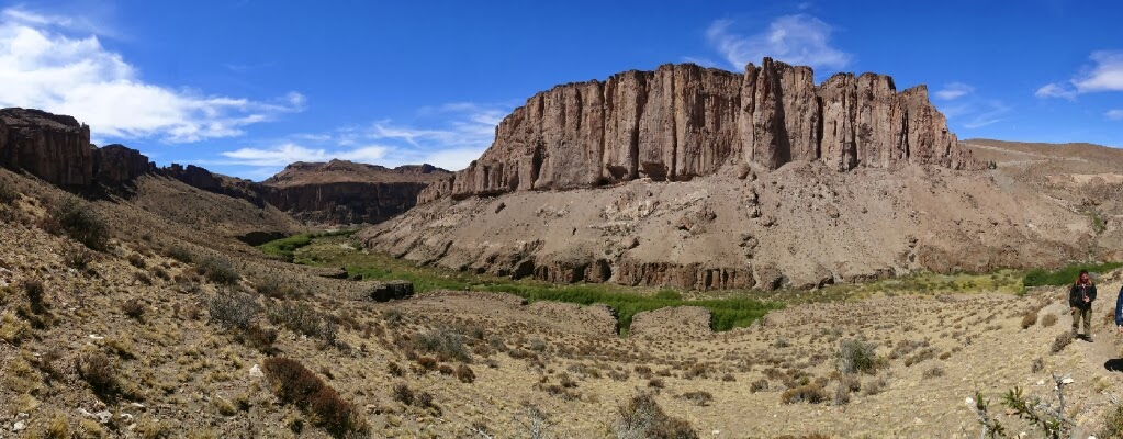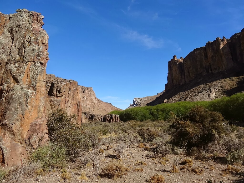 A pieds, nous descendons dans le canyon où coule le "rio de las pinturas". La rivière crée un écrin de verdure au milieu des roches orangées, c'est très beau.