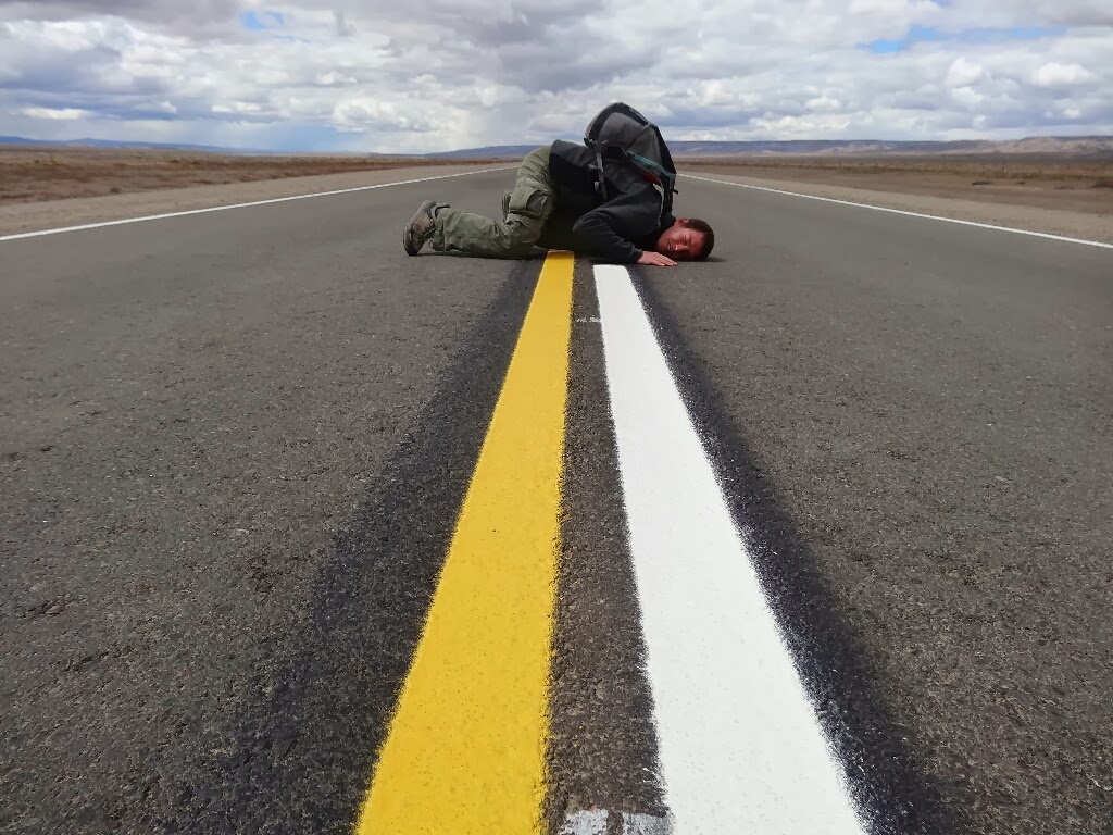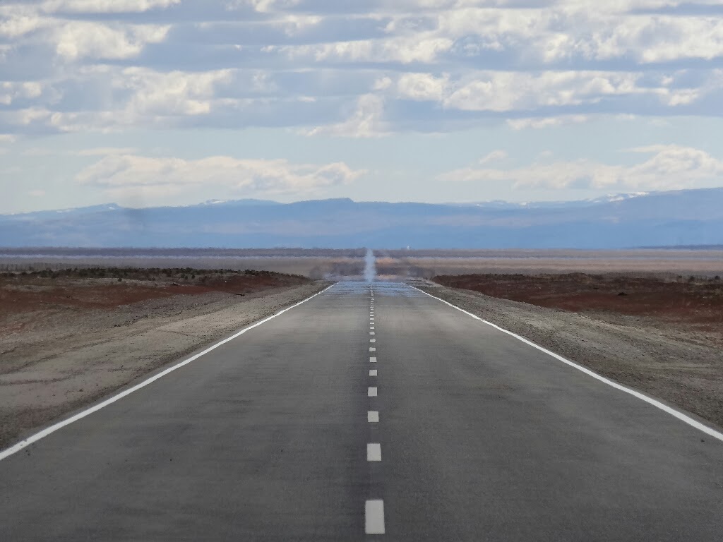 Tout le monde s'amuse à prendre des photos de cette route si longue et droite qu'on n'en voit pas le bout.