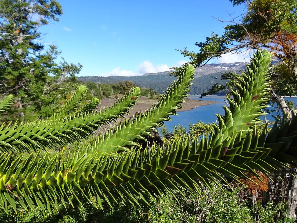 Le camping se situe au bord du lac Conguillio dans une forêt d'araucarias. Ce sont des arbres qui ont l'allure de pins mais qui au lieu d'aiguilles ont des feuilles coriaces en écaille sur les branches, et le tronc lorsqu'ils sont jeunes.