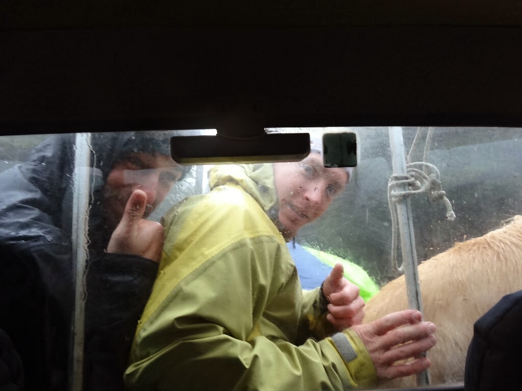 Nous arrivons au poste de garde du parc vers 13h. Il nous faut trouver une voiture pour nous ramener à Curacautin à 40 km. Alors qu'on se prépare des sandwiches, une voiture arrive. Ils sont déjà cinq à l'intérieur mais c'est un pick-up, il y a de la place à l'arrière à l'extérieur, avec le chien. Ils veulent bien nous emmener : ils se serrent à trois à l'avant, Édith et Hélène sont confortablement installées sur les sièges passagers avec une dame et sa fille. Boris et Jérémy sont à l'arrière sous la pluie et avec le brave toutou (mais qui pue en peu et adore se coller à Boris). Quelques heures avant on se disait que le stop allait être compliqué et en rigolant que nous finirions à l'arrière d'un pick-up avec un chien. C'est finalement comme ça que nous rentrons !