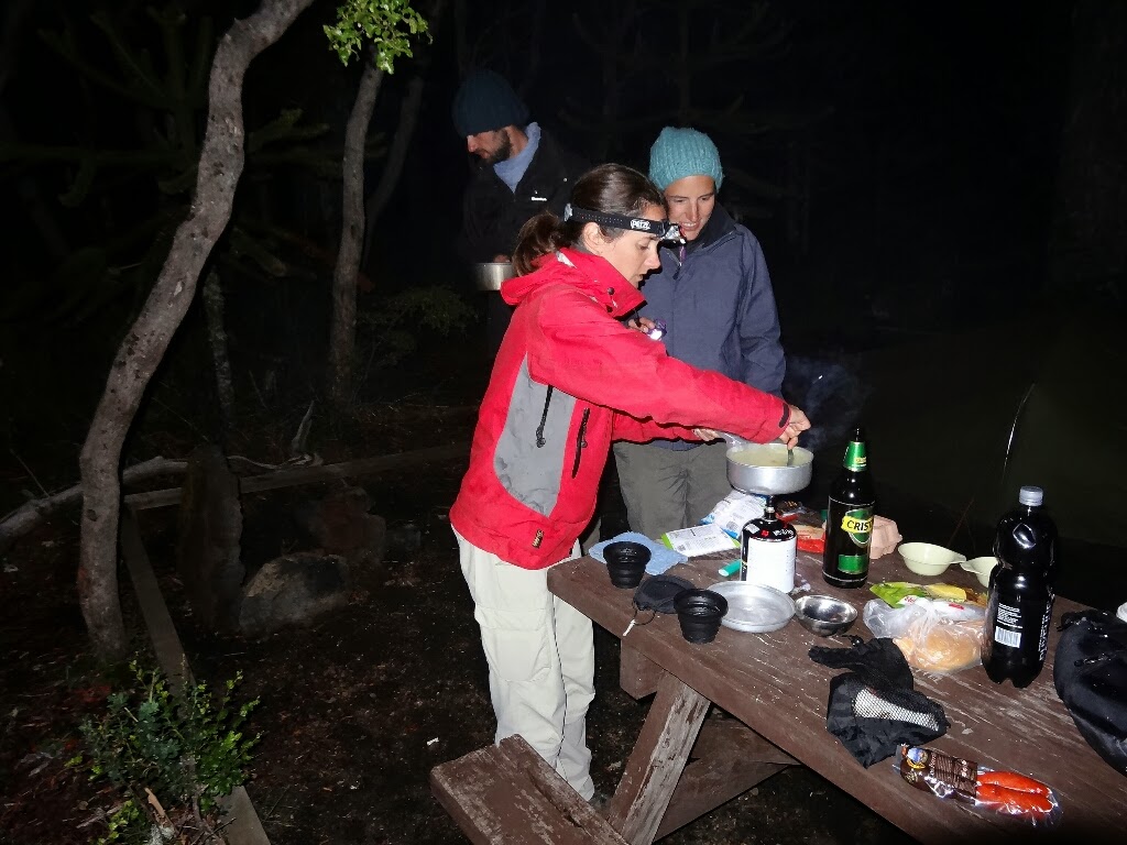 Au menu du soir : vin chilien (carmenere, un cépage qui n'existe pas en France), purée, saucisses, de quoi charger les batteries pour la rando du lendemain.