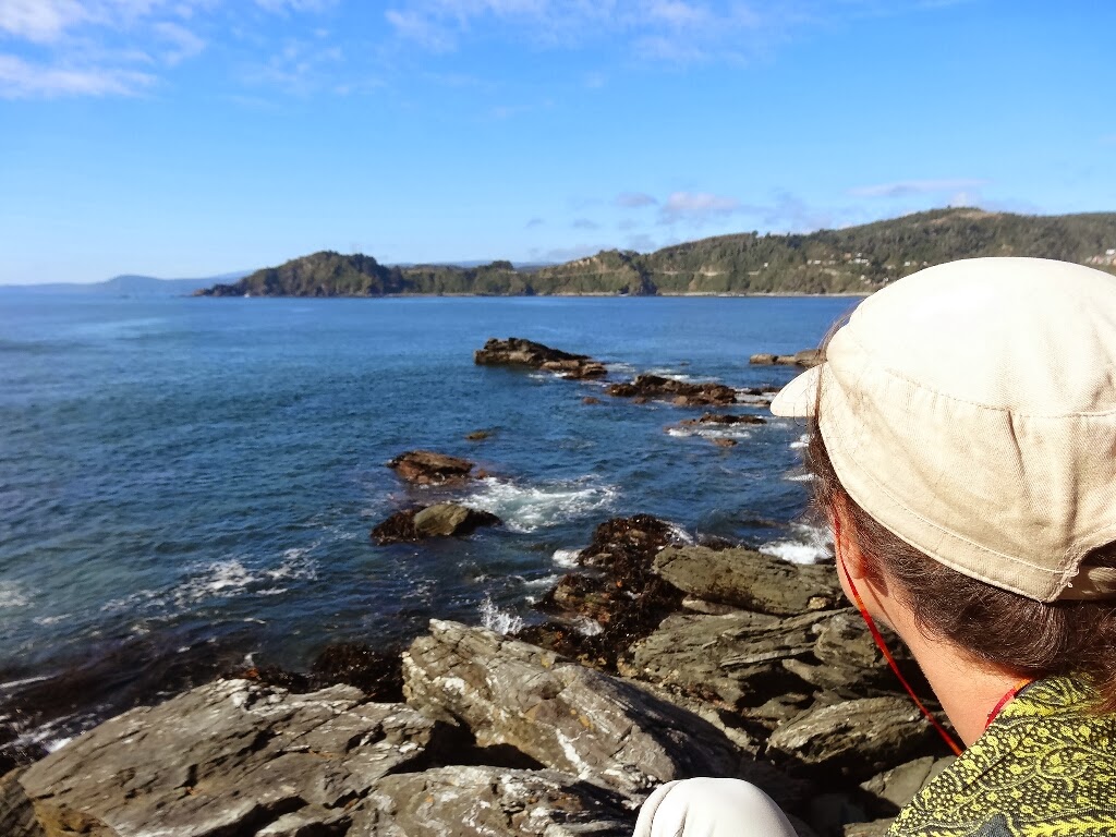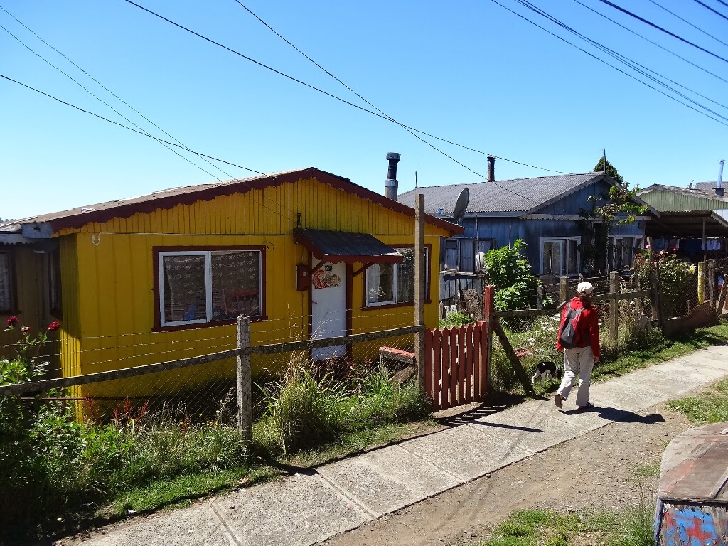 Le 30 janvier, nous quittons Entre Lagos, Maria et ses fabuleux petits dej'. Au moment du départ, elle nous fait cadeau de deux portes-clés de petites chaussettes tricotées. Nous partons pour la côte, on veut voir le Pacifique et, si possible, se rendre dans des petites baies où se trouvent des villages de communautés Huiliches et Mapuches. Nous prenons un bus jusqu'à Osorno, une jolie ville chilienne, la plus belle ville du monde (d'après deux chiliens croisés en ville).