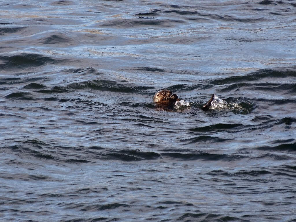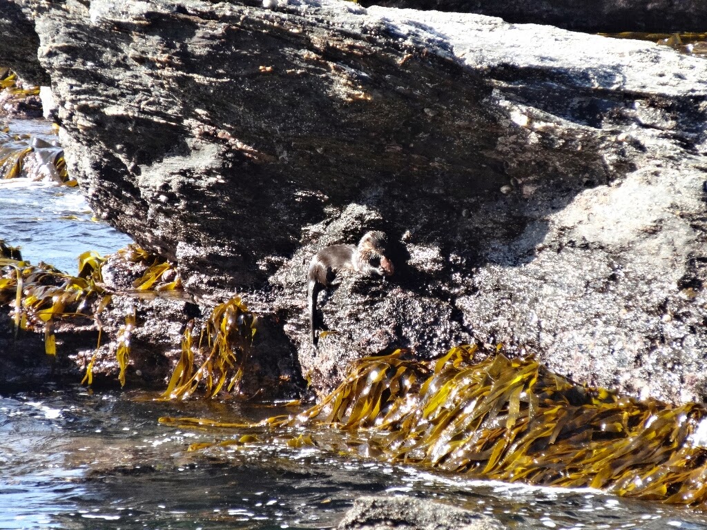 Pour passer l'après-midi, on se promène dans les rochers au bord de l'océan et là on aperçoit une loutre ! Elle nage, pêche, grimpe sur les rochers, on l'observe un bon moment. On ne sera pas venu ici totalement pour rien.