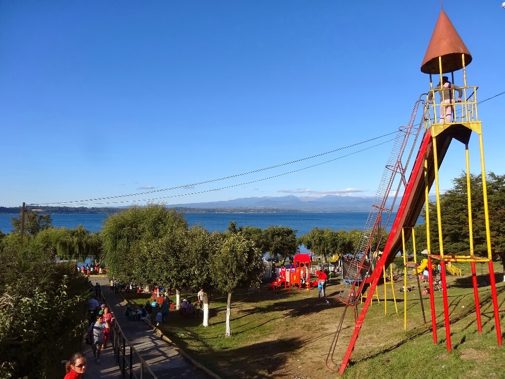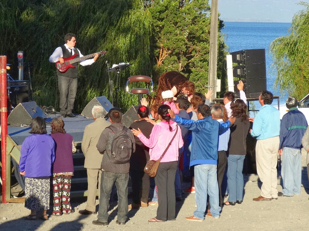 Nous passons une première journée à ne rien faire ou presque. On se balade dans la ville et au bord du lac. Il y a ici beaucoup de touristes chiliens, ça ressemble à une petite station balnéaire française : baignade, pédalo, farniente et baraques à frites. Le soir, petite animation, concert religieux avec des spectateurs en trance.