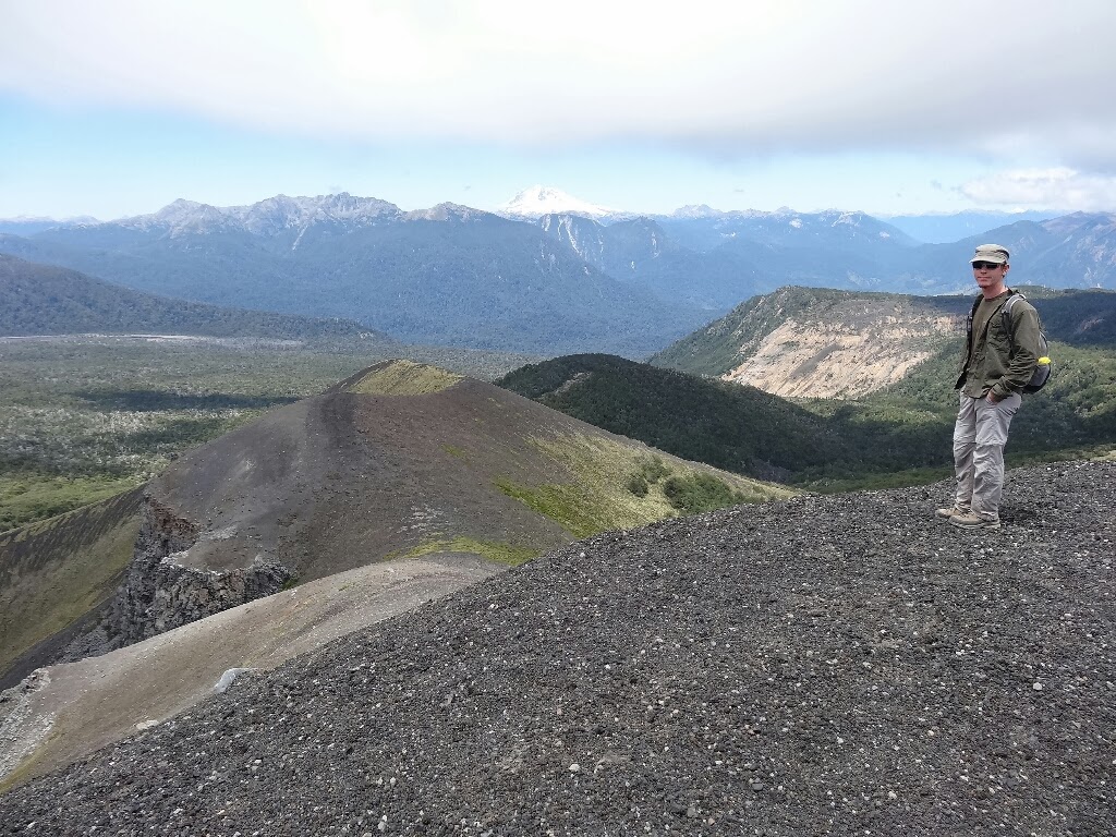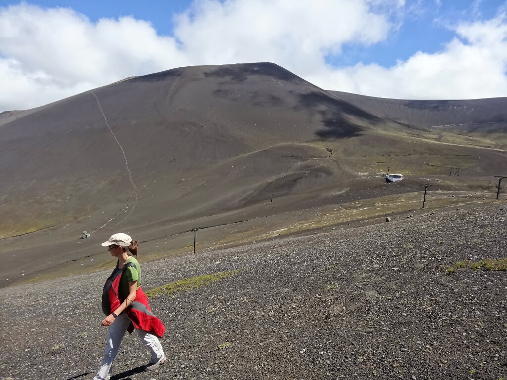Et enfin, le troisième jour on part se promener dans le parc de Puyehue. On prend d'abord le bus puis nous faisons du stop sur la piste qui monte à Antillanca, une station de ski sur volcan, depuis laquelle on peut atteindre un point de vue. Une première camionnette nous avance de 3km puis nous marchons près d'une heure sans voir une voiture. Heureusement les chiliens sont sympas, la première voiture qui passe nous embarque et nous emmène jusqu'à Antillanca. De là nous partons à pieds au milieu des cônes volcaniques.
