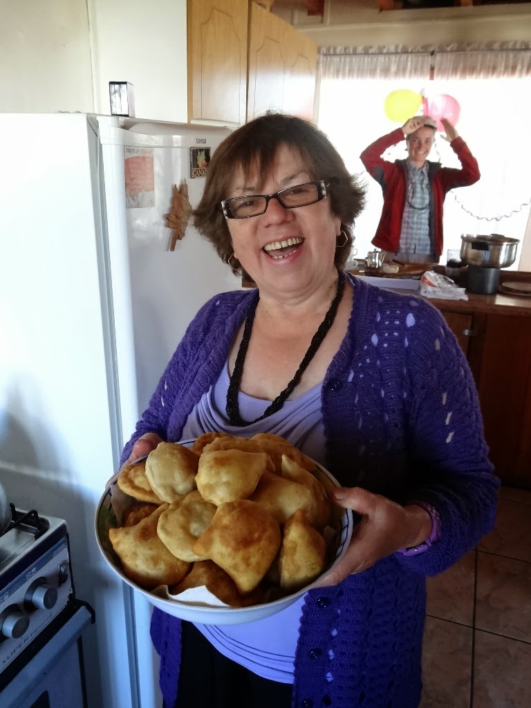 On goûte à ses empenadas (spécialité chilienne : de la pâte farcie de viande, herbes et fromage, le tout est frit ou cuit au four), les meilleurs que l'on ait mangé jusque là.