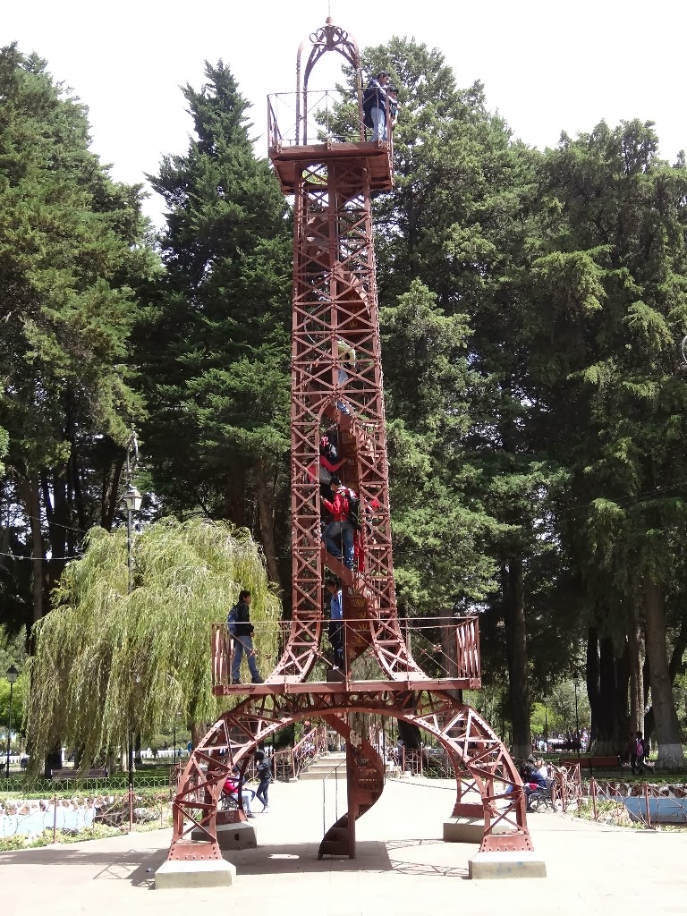 Petit tour au parc Bolivar où trône une tour Eiffel et où les employée portent le bleu de travail version "chulita".