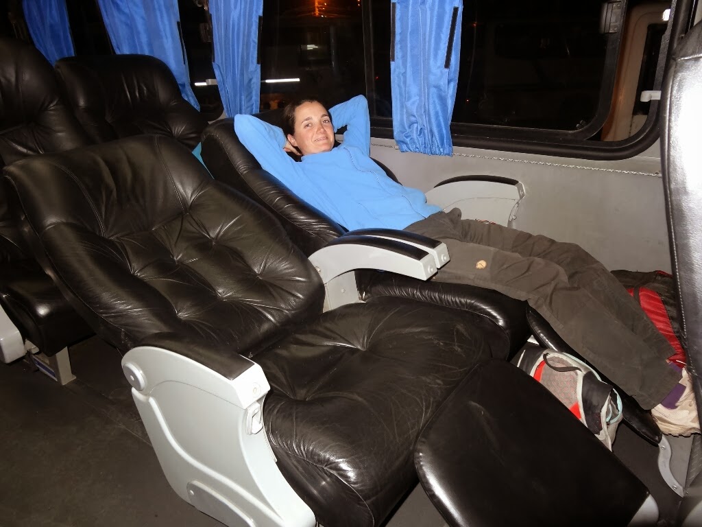 Le 8 mars au soir nous prenons un bus pour La Paz. Nous avions réservé des places en "semi cama" (demi lit) mais finalement notre bus est un "cama" (pour le même prix), la nuit devrait être confortable.