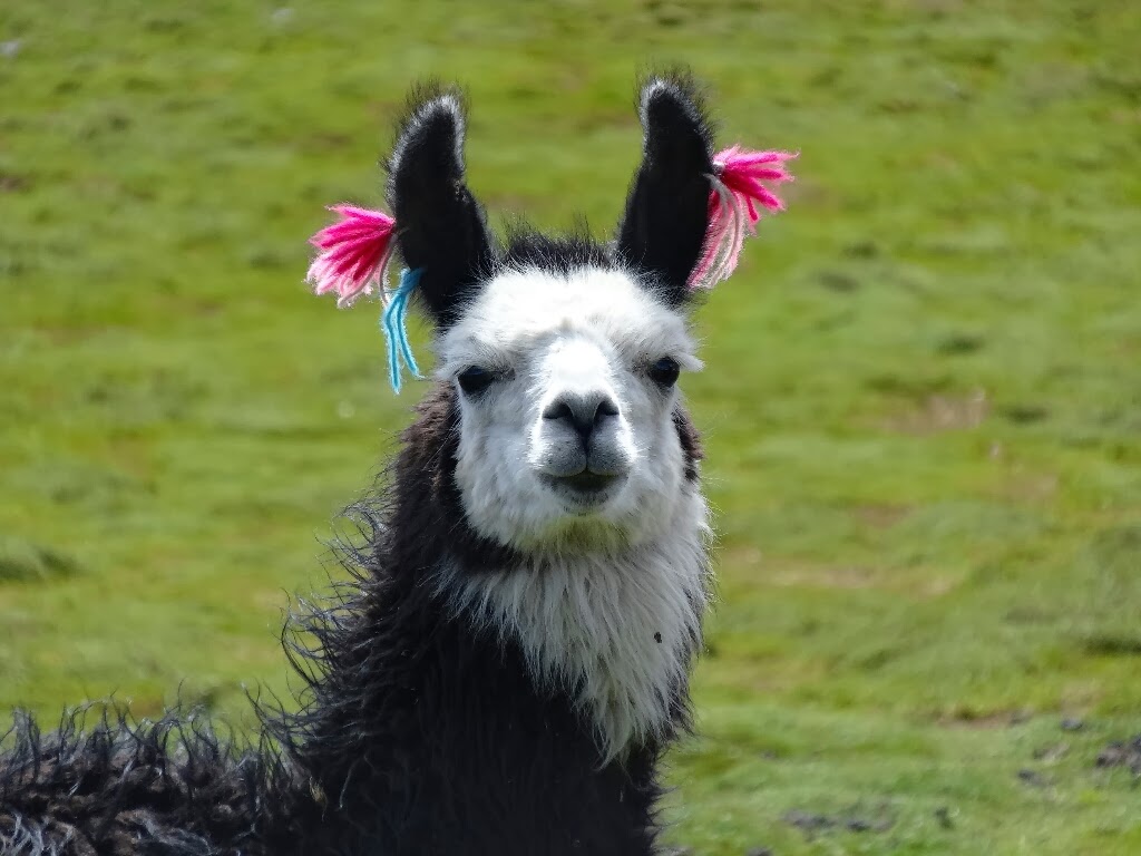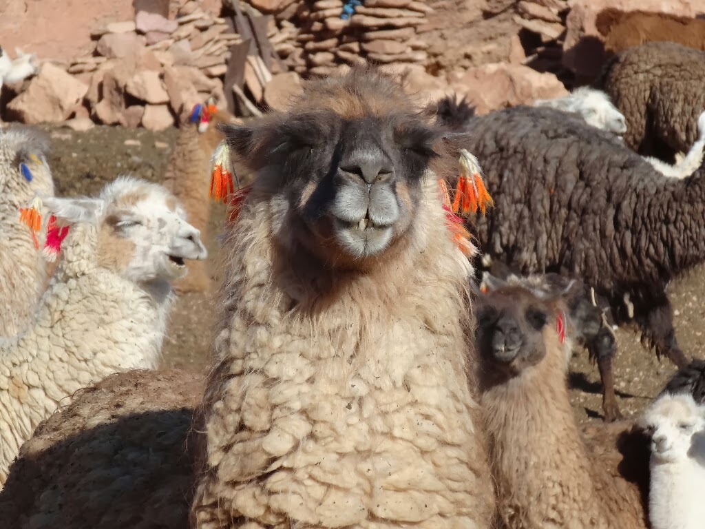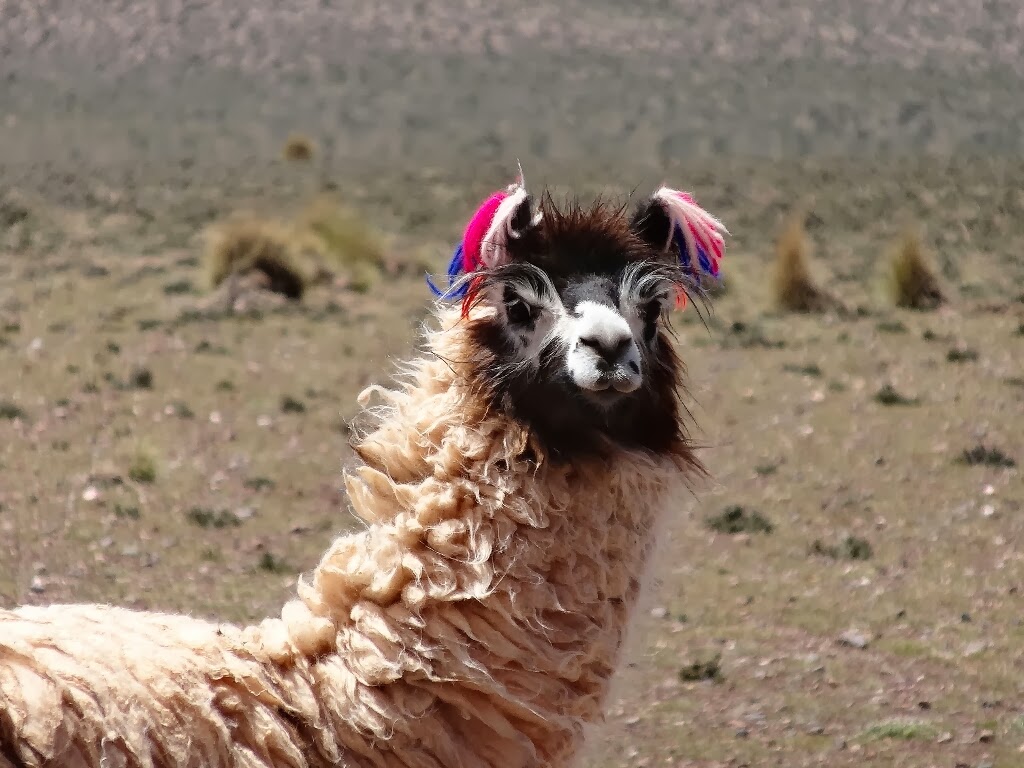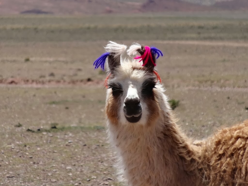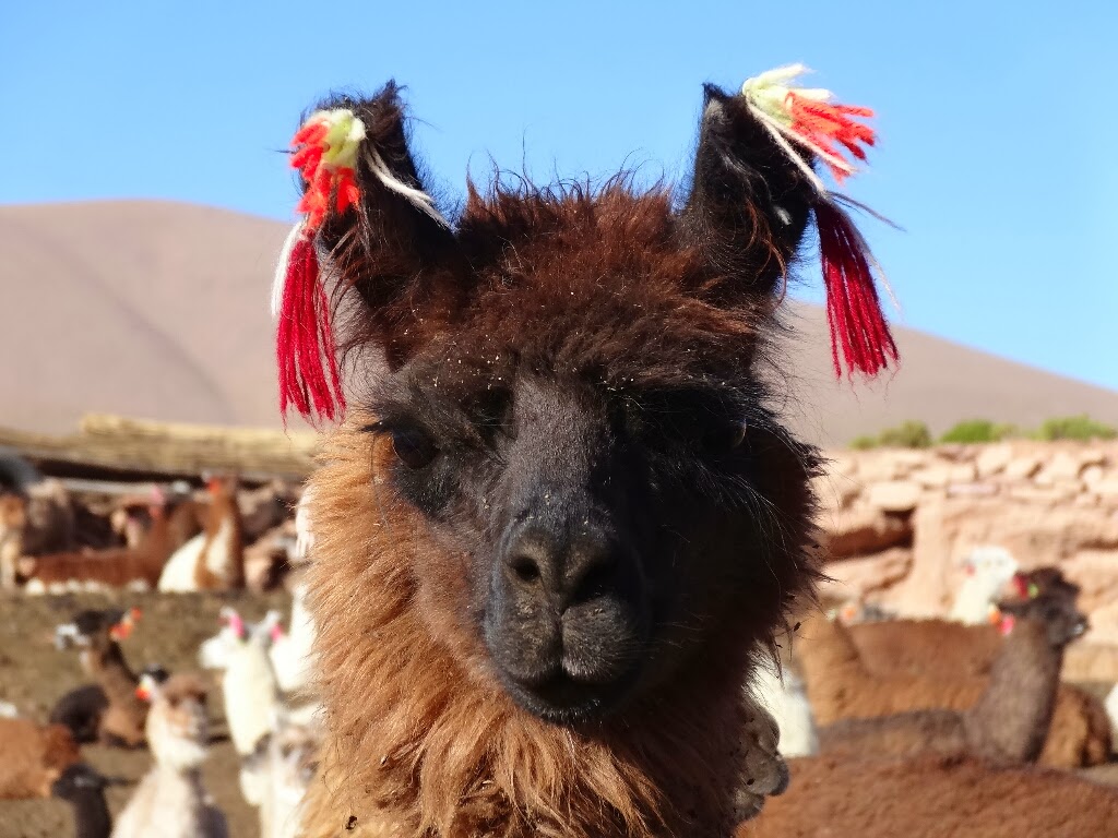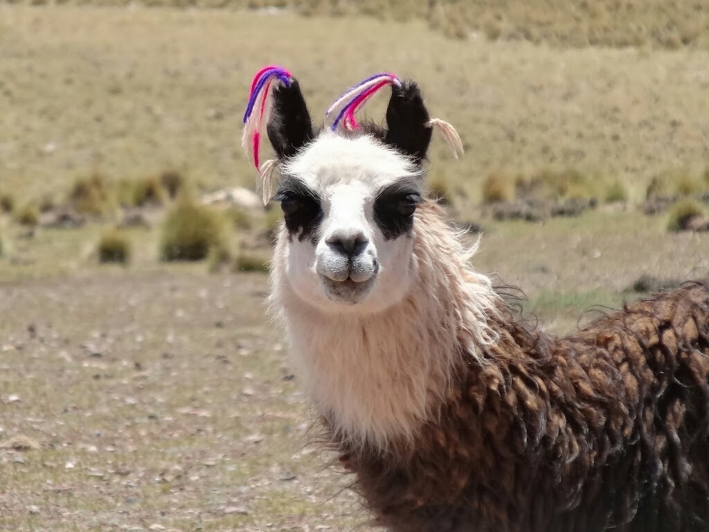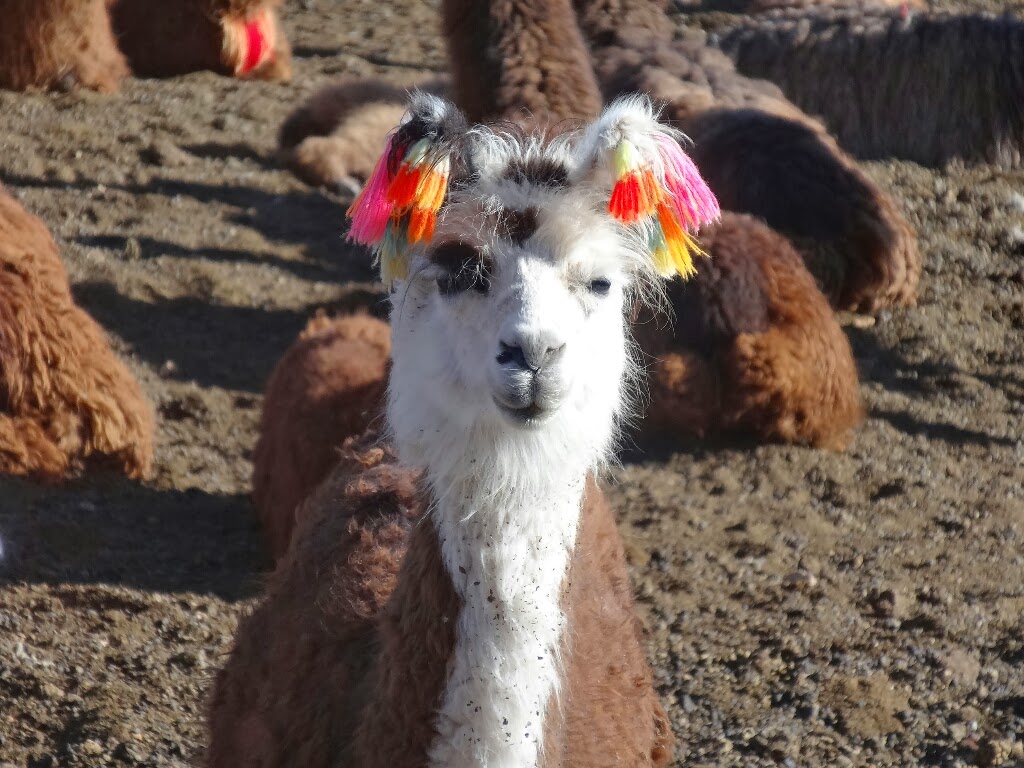 Petite collection de portraits de lamas, les fils de laine servent à les identifier mais sont aussi des décorations pour le carnaval.