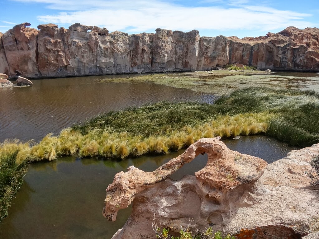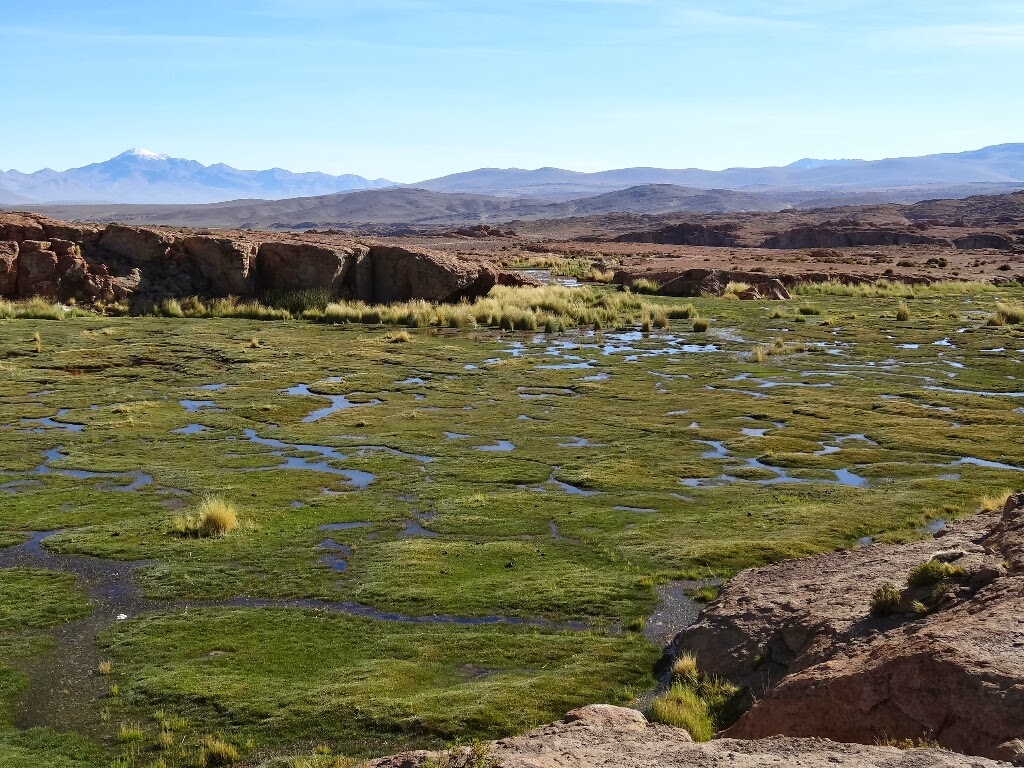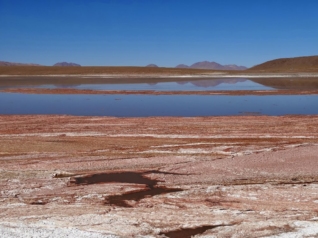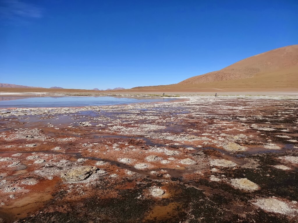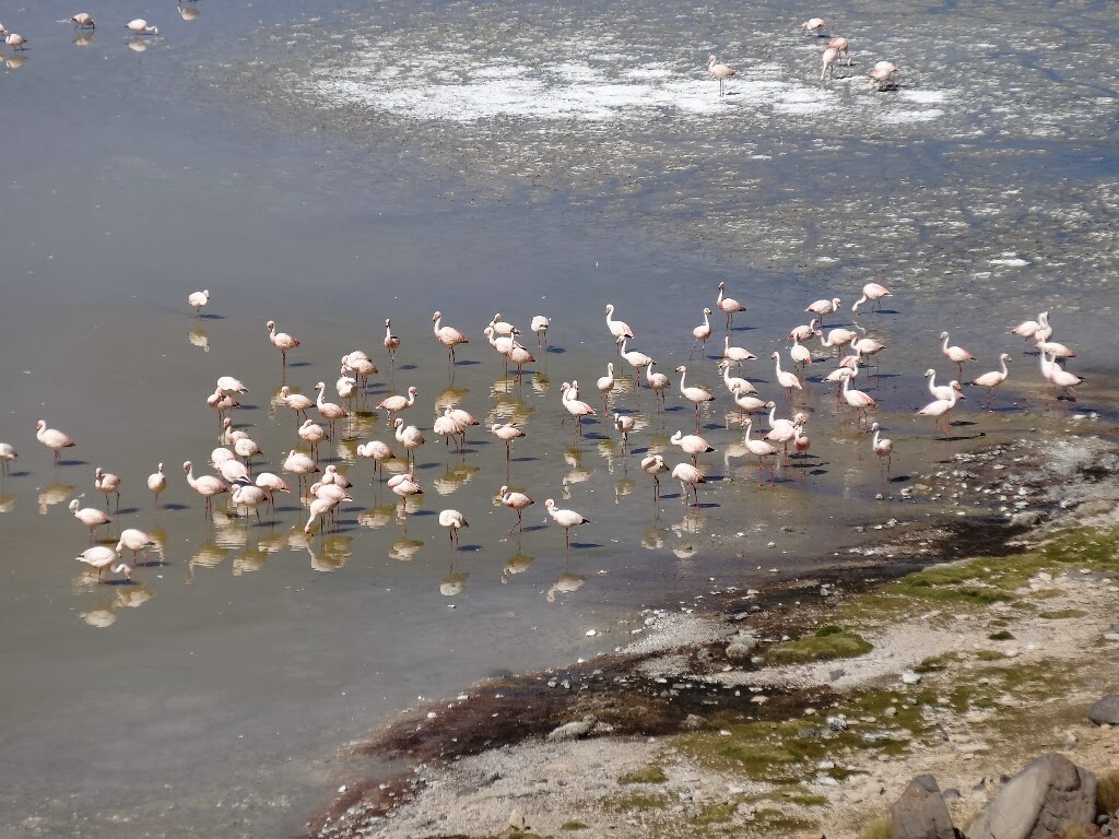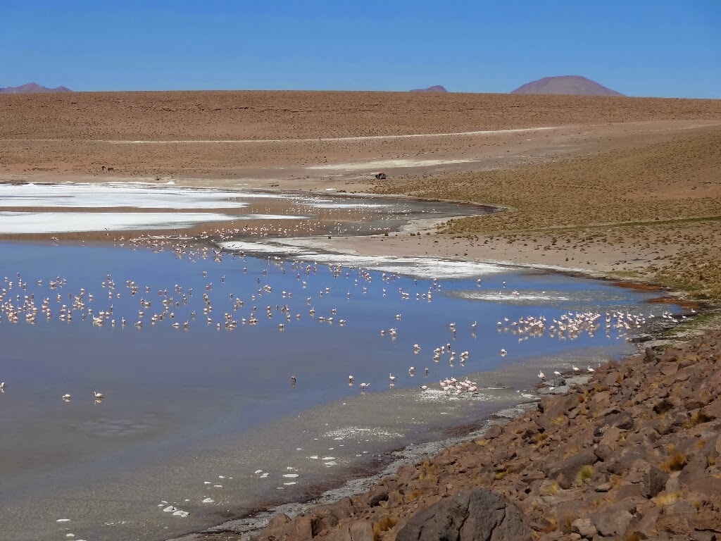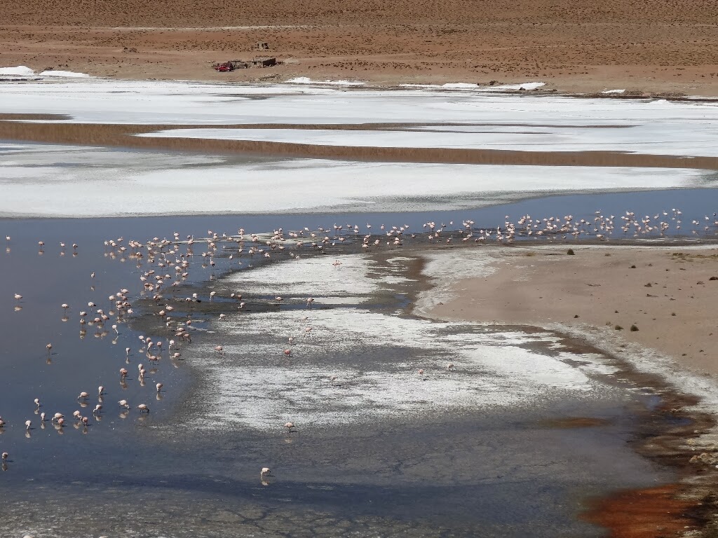 Arrivés à la laguna Kollpa, nous marchons d'une rive à l'autre en admirant les centaines de flamants roses qui se trouvent là.