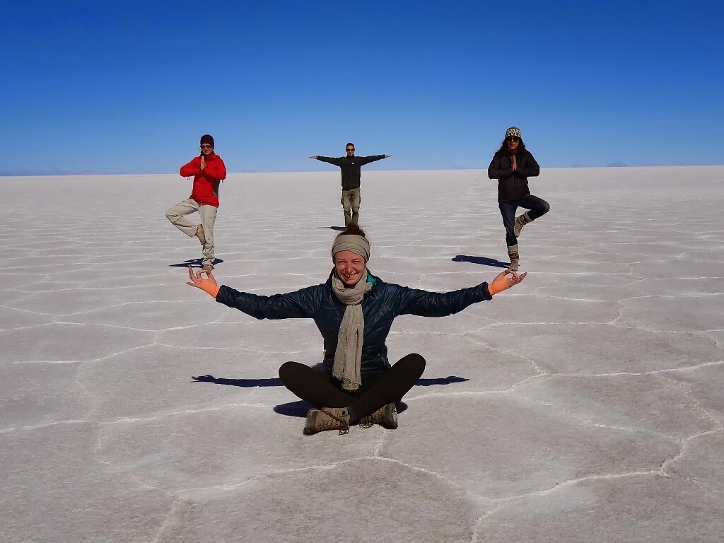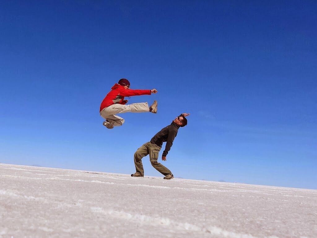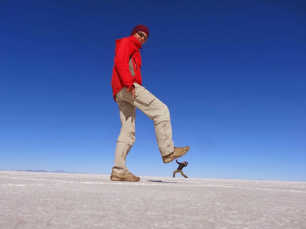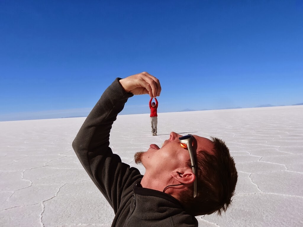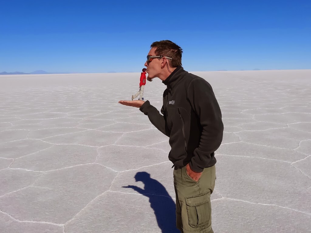 Une dernière halte sur le salar pour profiter de cet endroit magique. Le blanc à perte de vue trompe nos yeux et nos appareils photos. C'est alors que notre imagination peut se manifester...