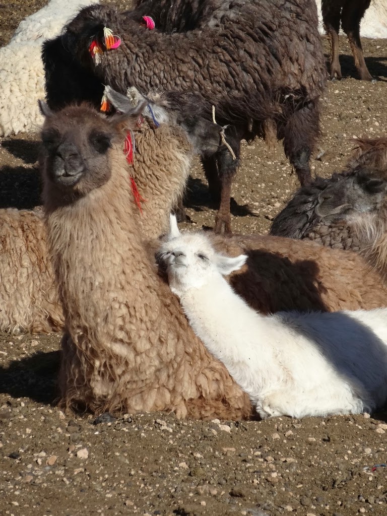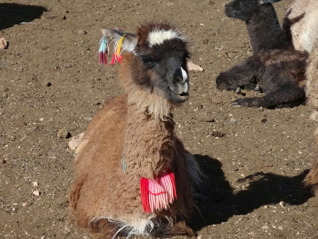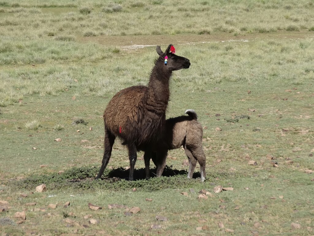 La route se poursuit en altitude, nous croisons plusieurs petits villages et de nombreux lamas parfois en compagnie d'ânes.