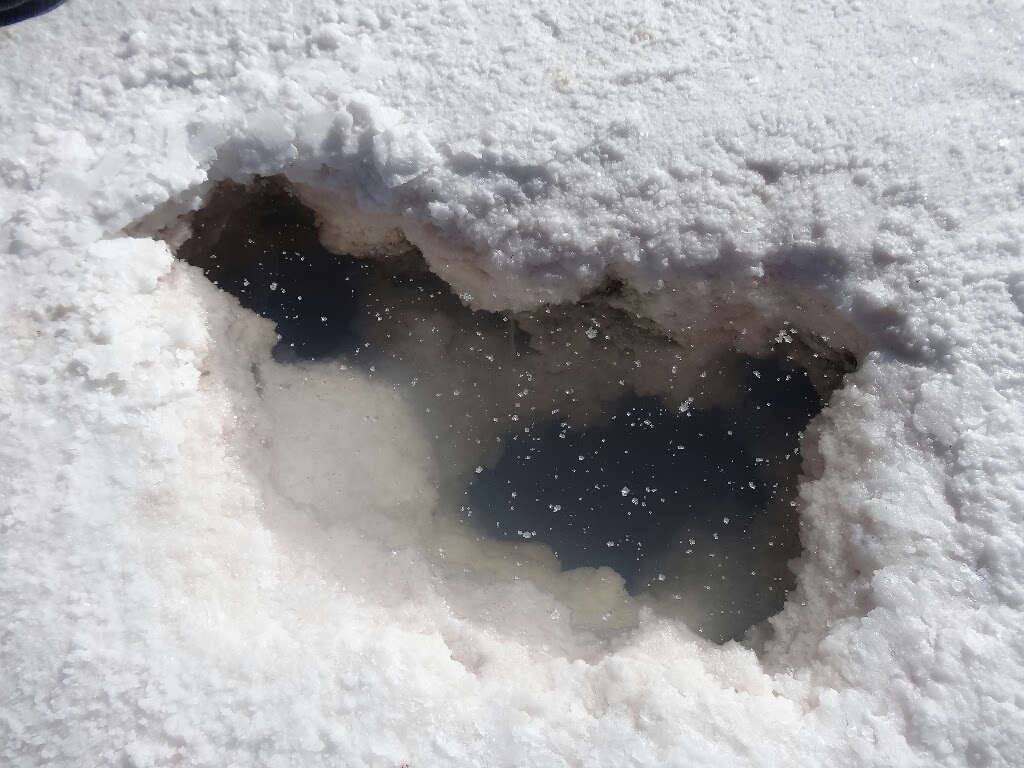 Le salar est constitué d'une alternance de couches de sel, d'eau et de glaise sur 40m d'épaisseur.