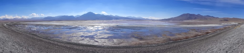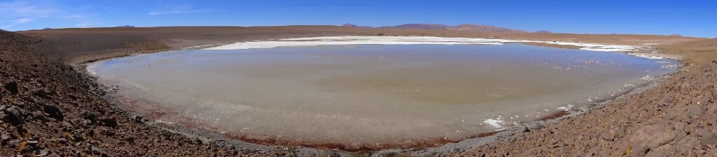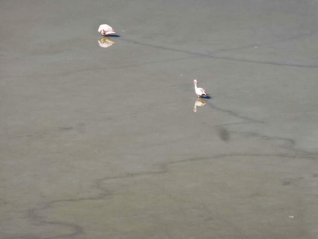Puis nous atteignons une première la lagune, la laguna Hedionda. Les encroûtements roses donnent un aspect particulier au rivage, et aussi une odeur digne des plus puantes vasières de Camargue.