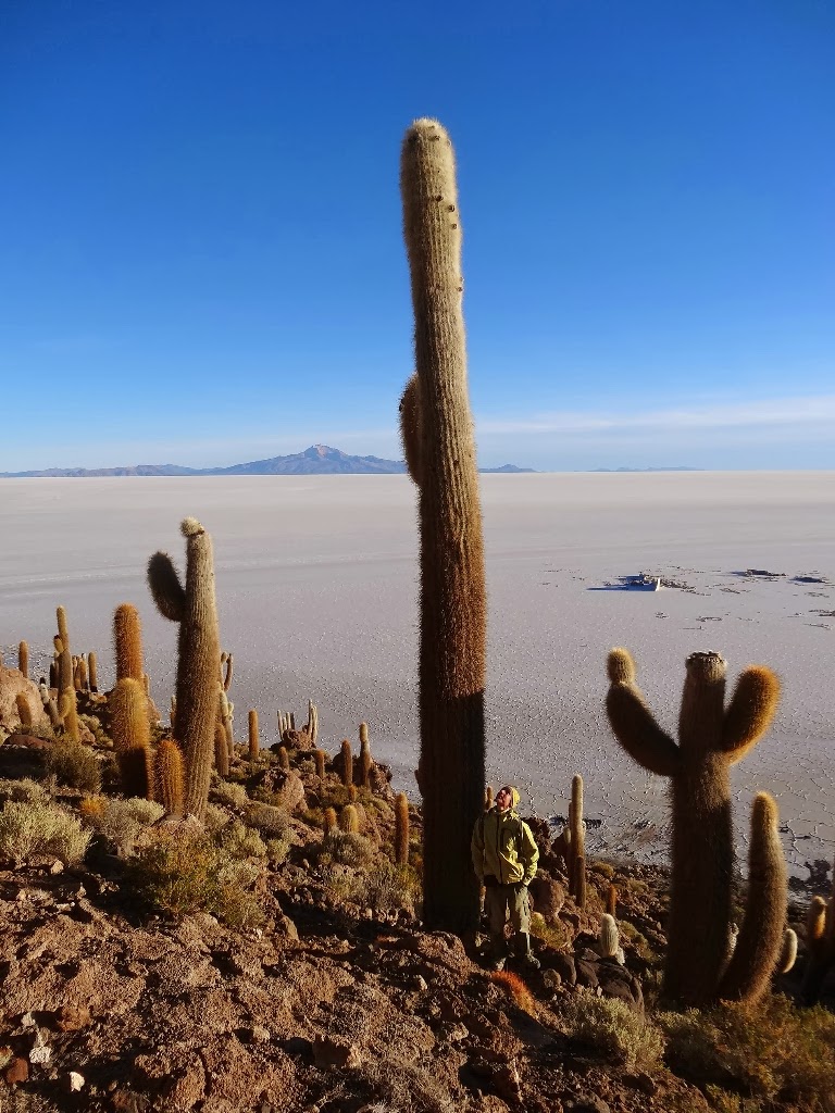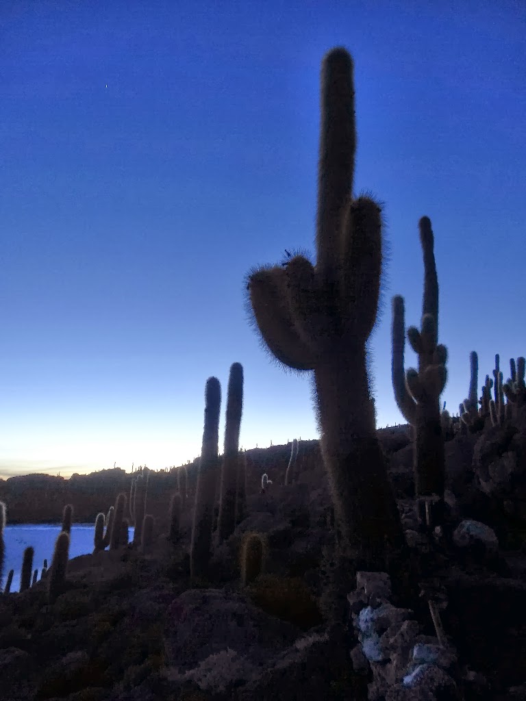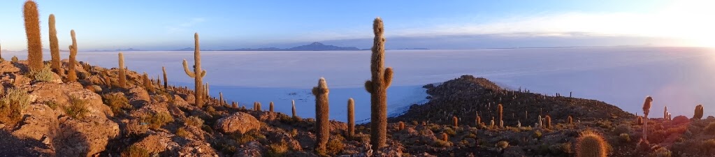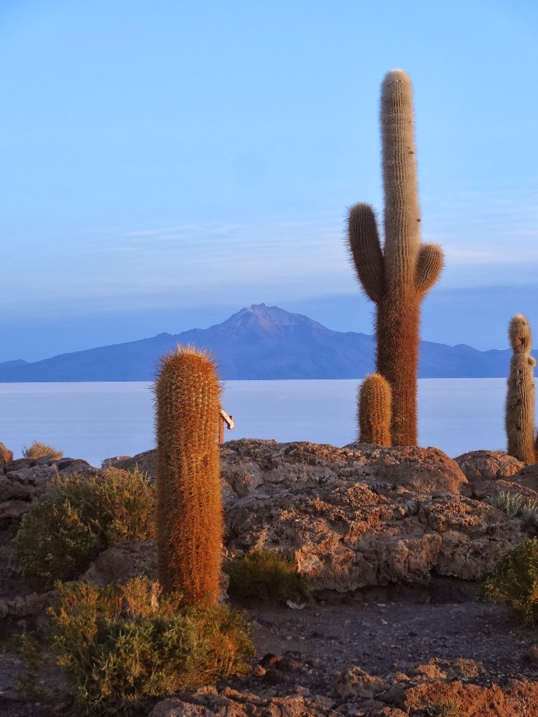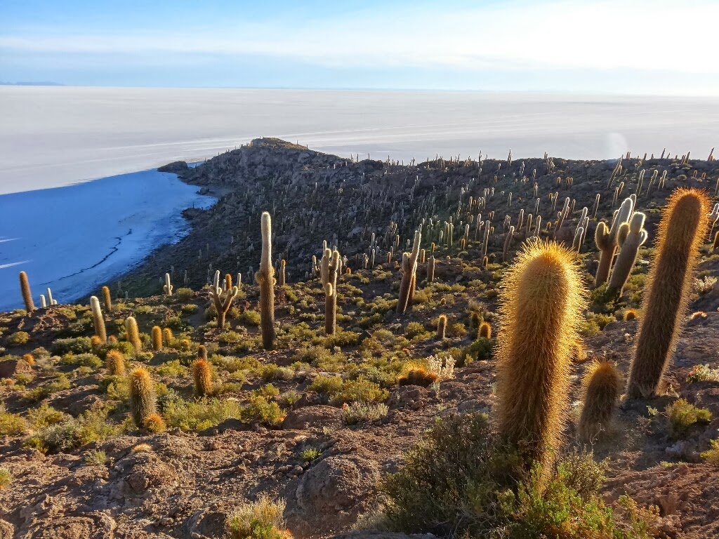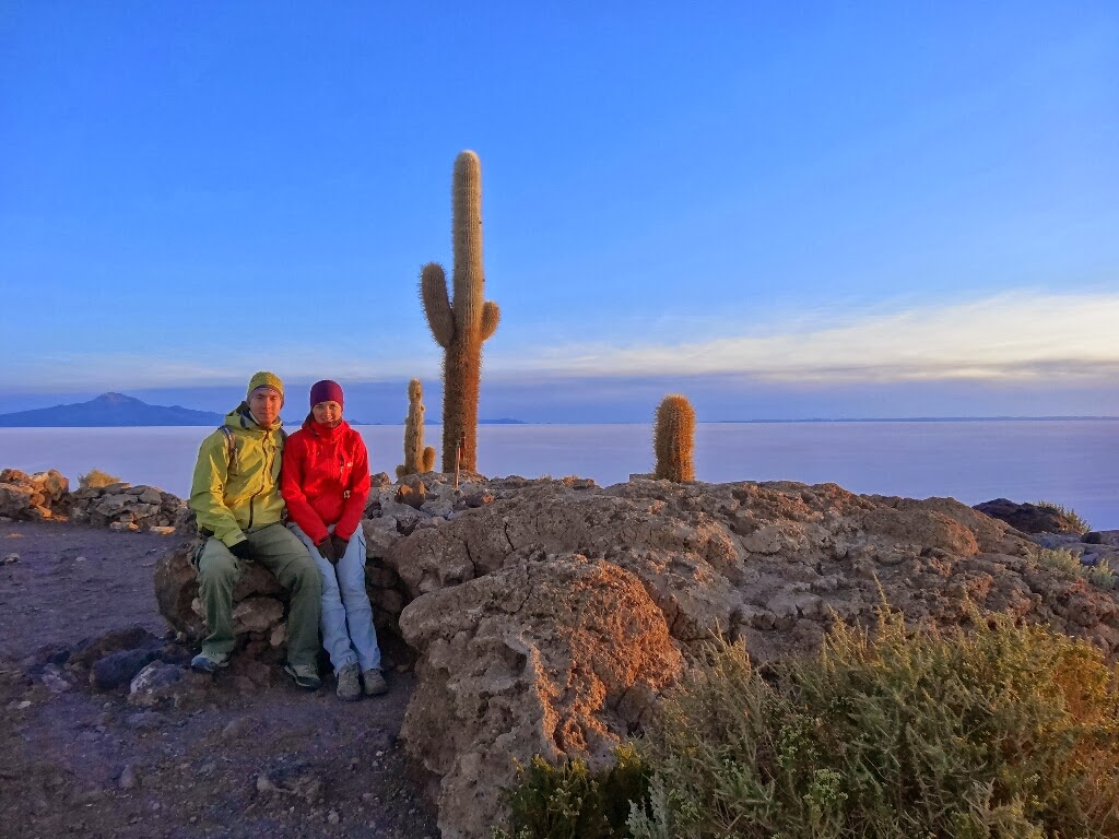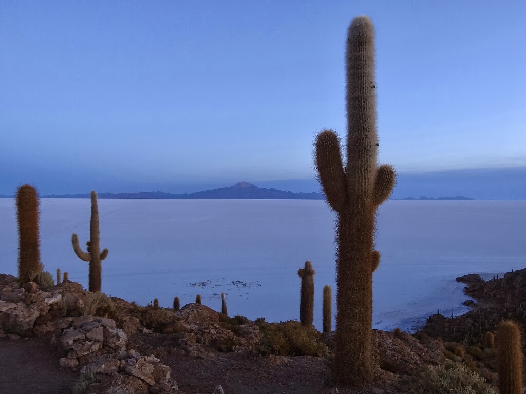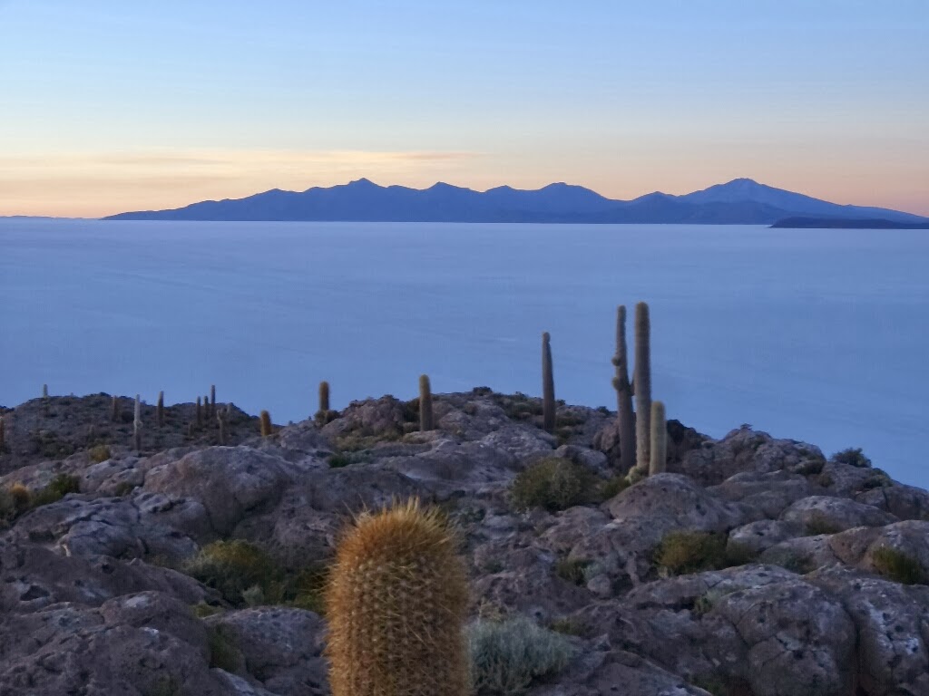 A notre arrivée nous montons au sommet de ce rocher couvert de cactus au milieu du salar pour y admirer le lever de soleil. Nous ne sommes que quatre, parfait.