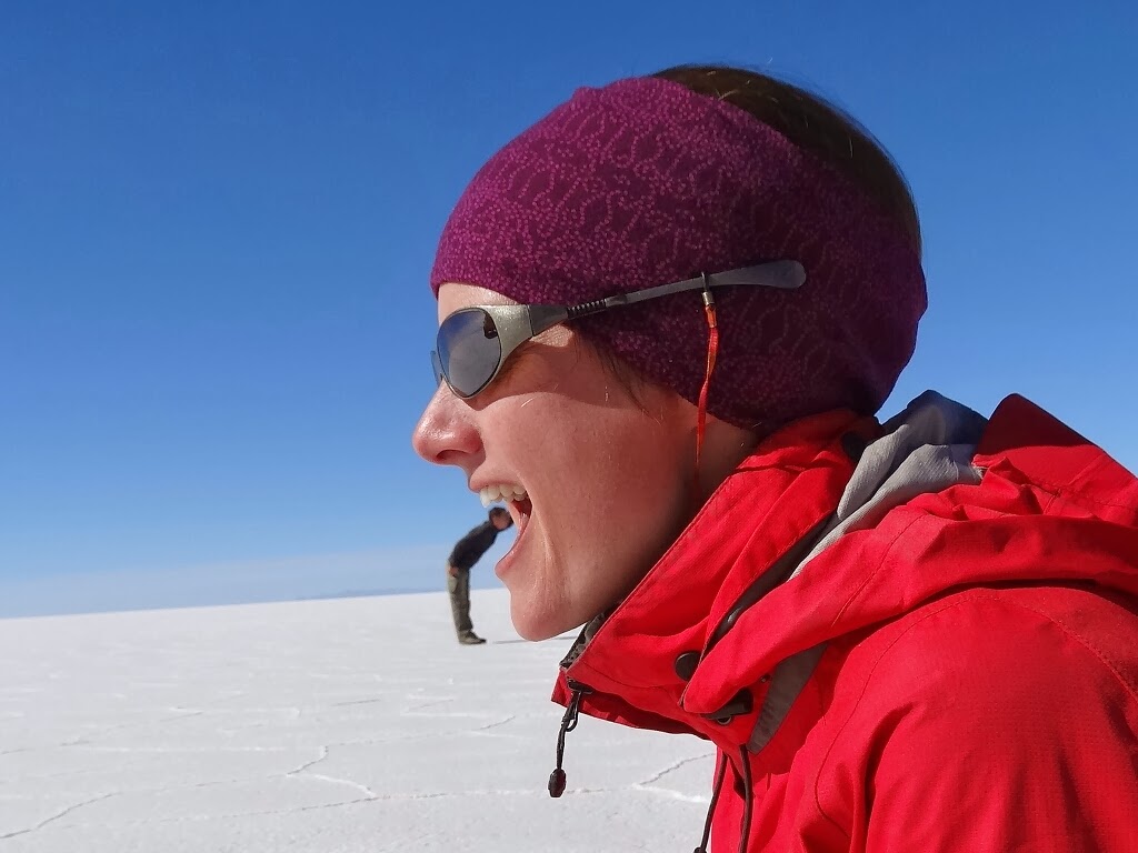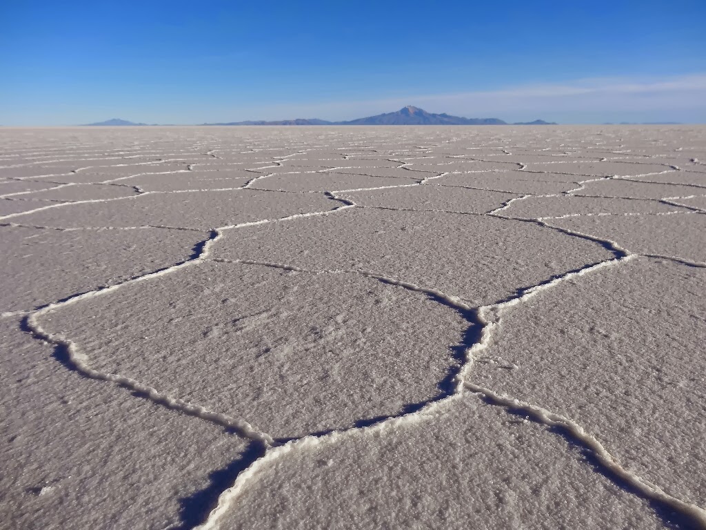 Nous admirons cette immense étendue blanche, un désert de sel de 12 500km², ce qui équivaut environ à deux départements français. C'est le plus grand salar du monde. On dirait un grand lac gelé.