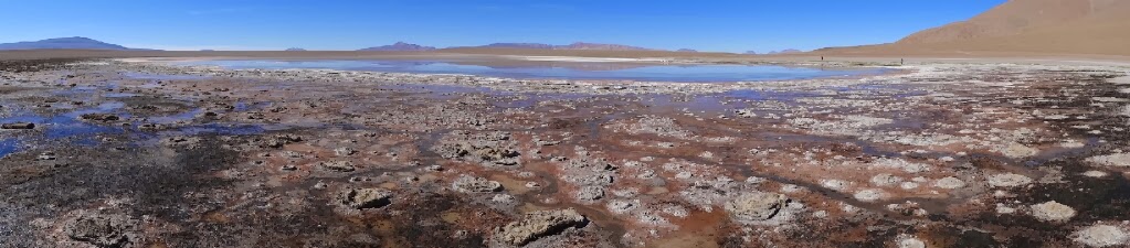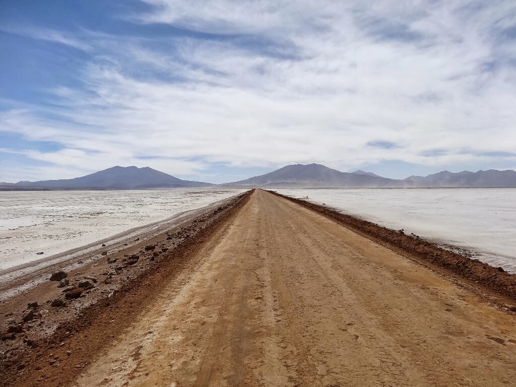 Nous repartons en direction de Villa Mar notre destination pour la nuit et sortons de la réserve naturelle. En chemin on passe un salar qui est exploité pour le Borax. C'est un sel de bore utilisé dans différentes industries. Les salars et lagunes sont aussi une source de matières premières importante pour la Bolivie.