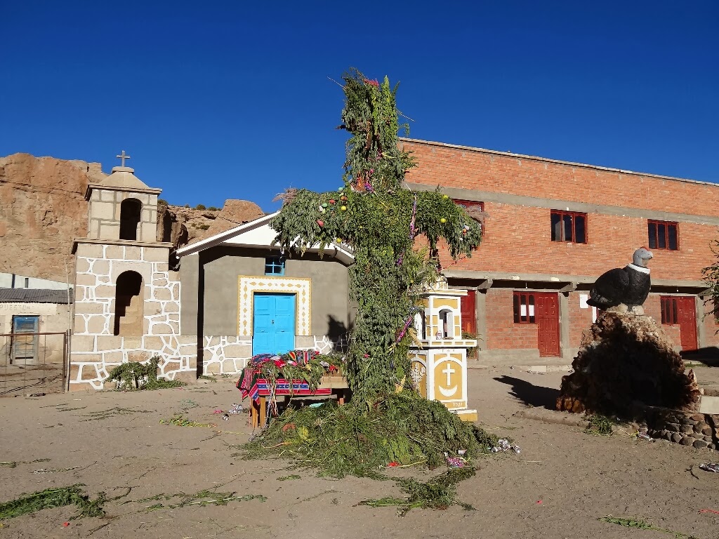 Le lendemain, en attendant le départ, nous profitons des premiers rayons du soleil dans le village. La fête c'est terminée tard sur la place autour de cette croix.