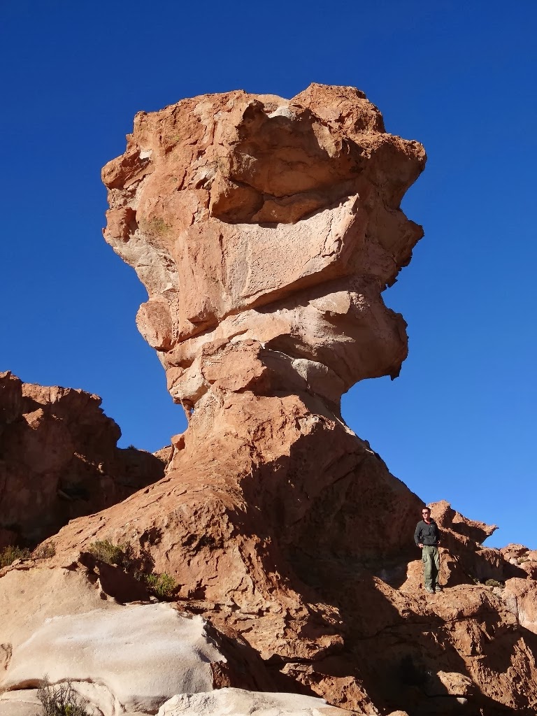 Depuis Villa Mar nous roulons jusqu'à une roche nommée "la coupe du monde" de par sa forme et un lieu appelé "Italiano perdido". Mais le spectacle ne s'arrête pas à ce seul rocher. On se balade au milieu de dépôts de cendres volcaniques consolidées et érodées qui ont pris des formes très diverses.