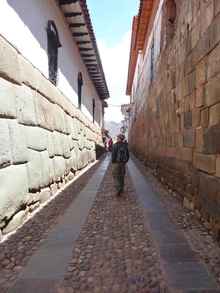 Nous trouvons un petit hôtel en centre ville puis nous allons nous promener. C'est une très belle ville coloniale bâtit sur les vestiges de la ville inca, "Qusqu" en Quechua signifie nombril. C'est en 1534 que Francisco Pizzaro s'empara de la ville en saccageant les monuments et tuant les habitants. Les constructions coloniales s'appuient et intègrent les matériaux des édifices précolombiens. On retrouve donc partout de beaux murs aux pierres parfaitement agencées.