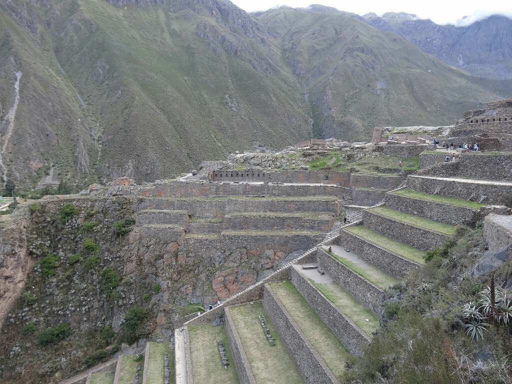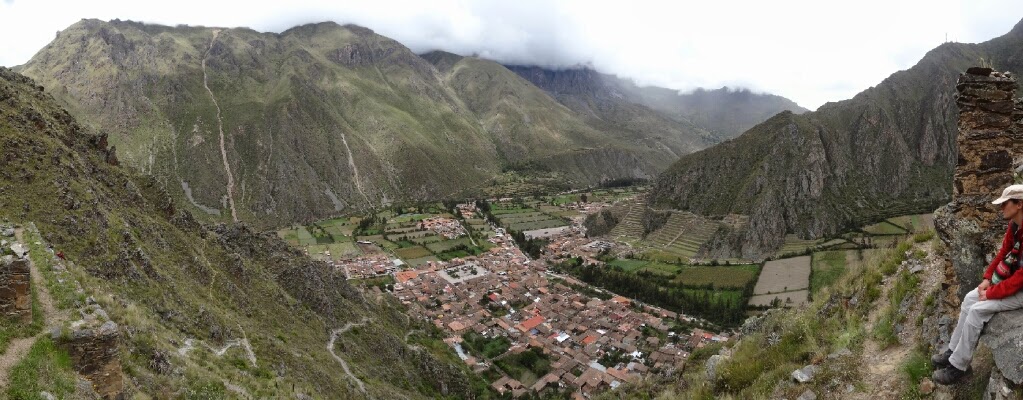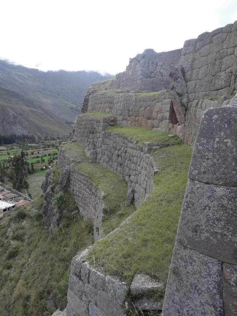 A notre retour d'Aguas Calientes, le 27 mars, nous nous arrêtons dans le joli village d'Ollantaytambo à l'extrémité ouest de la vallée sacrée où coulent le rio Urubamba. C'est ici que se trouve une des forteresses incas qui surveillaient le chemin du Machu Picchu. Nous ne comptions pas la visiter, compte tenu du tarif d'entrée abusif et après avoir vu le top des ruines incas au Machu Picchu. Mais, en cette fin de journée, on s'approche de la sortie pour quand même jetter un oeil et comme personne ne nous dit de ne pas entrer, nous entrons l'air de rien et visitons gratuitement le site.